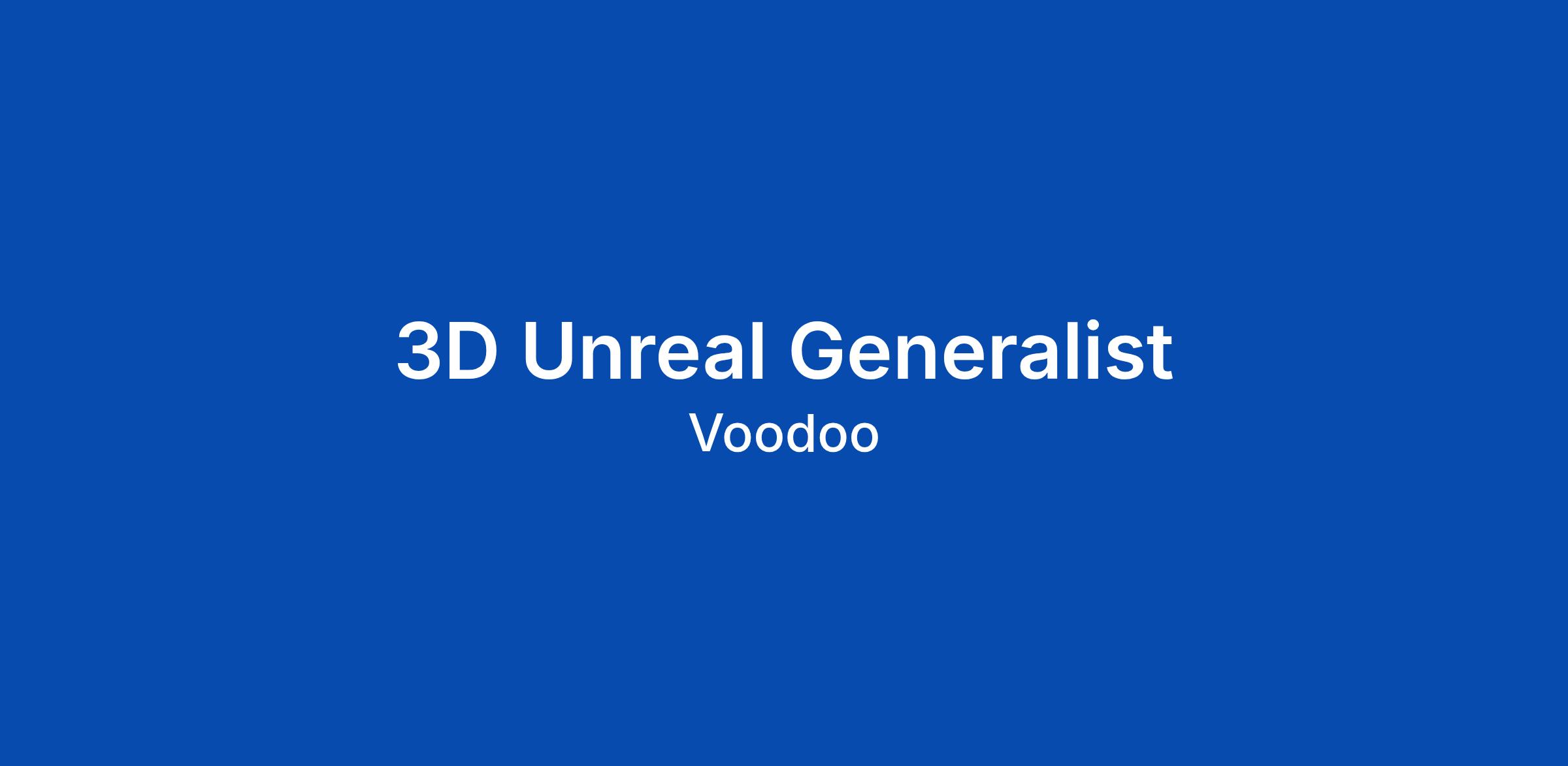 ABOUT VOODOO Founded in 2013, Voodoo is a tech company that creates mobile games and apps with a mission to entertain the world. Gathering 800 employees, 7 billion downloads, and over 200 million active users, Voodoo is the #3 mobile publisher worldwide in terms of downloads after Google and Meta. Our portfolio includes chart-topping games like Mob Control and Block Jam, alongside popular apps such as BeReal and Wizz. TEAM Our Growth team is a transversal entity aiming to maximize and deliver the potential of any mobile product. It combines user acquisition, creative content production, monetization, and the tech capabilities required to turn applications into global hits. With over 150 experts, we operate at the forefront of mobile marketing and ad tech across various types of games (hypercasual, hybrid, 100% IAP). Weβre looking for the first 3D Unreal Engine Generalist to join our high-performing Creative Marketing team https://voodoo.notion.site/Meet-our-Creative-team-0a3e236b591848a088e1c76fb22c0633 focused on producing top-performing mobile ads for our hit games, especially Mob Control. ROLE You will be responsible for crafting visually compelling, gameplay-driven 3D ad creati