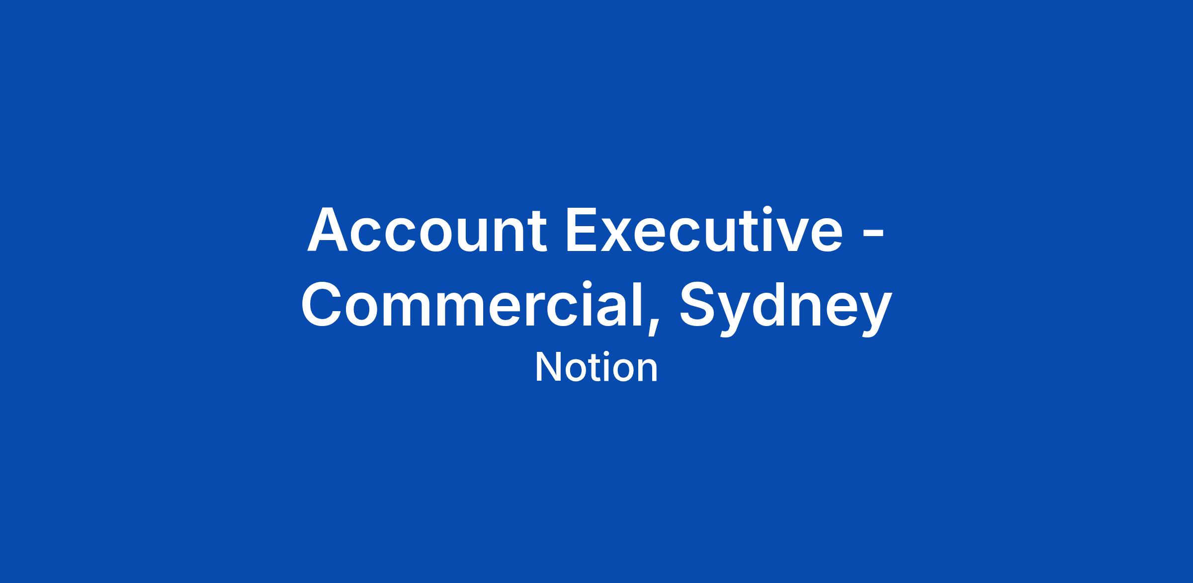 ABOUT US: Notion helps you build beautiful tools for your life’s work. In today's world of endless apps and tabs, Notion provides one place for teams to get everything done, seamlessly connecting docs, notes, projects, calendar, and email—with AI built in to find answers and automate work. Millions of users, from individuals to large organisations like Toyota, Figma, and OpenAI, love Notion for its flexibility and choose it because it helps them save time and money. In-person collaboration is essential to Notion's culture. We require all team members to work from our offices on Mondays, Tuesdays, and Thursdays, our designated Anchor Days. Certain teams or positions may require additional in-office workdays. ABOUT THE ROLE: We’re hiring an Account Executive in Sydney to drive new customer acquisition and expansion across our Commercial (SMB) segment. This role is for a full-cycle seller who can run structured discovery calls, deliver compelling demos, navigate technical and business stakeholders, and progress complex opportunities to close—while operating with a strong outbound mindset and high urgency. You’ll work with buyers such as CIO, CTO, VP Product and VP Engineering, and you... Click Apply to read the full job description.