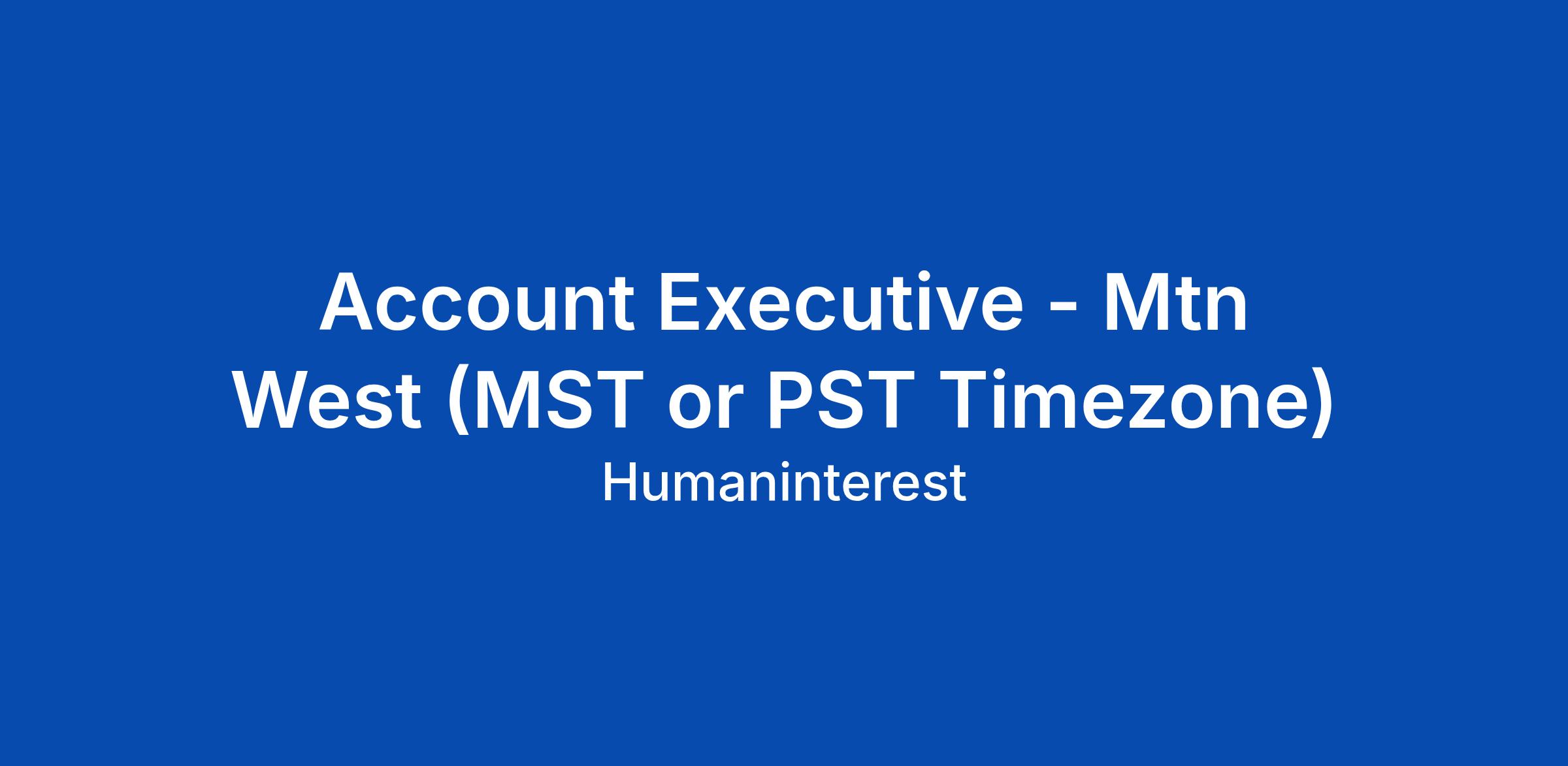 Account Executive - Mtn West (MST or PST Timezone)