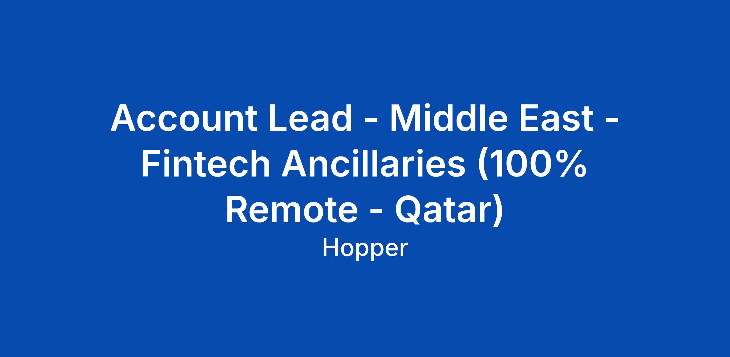 Account Lead - Middle East - Fintech Ancillaries (100% Remote - Qatar)