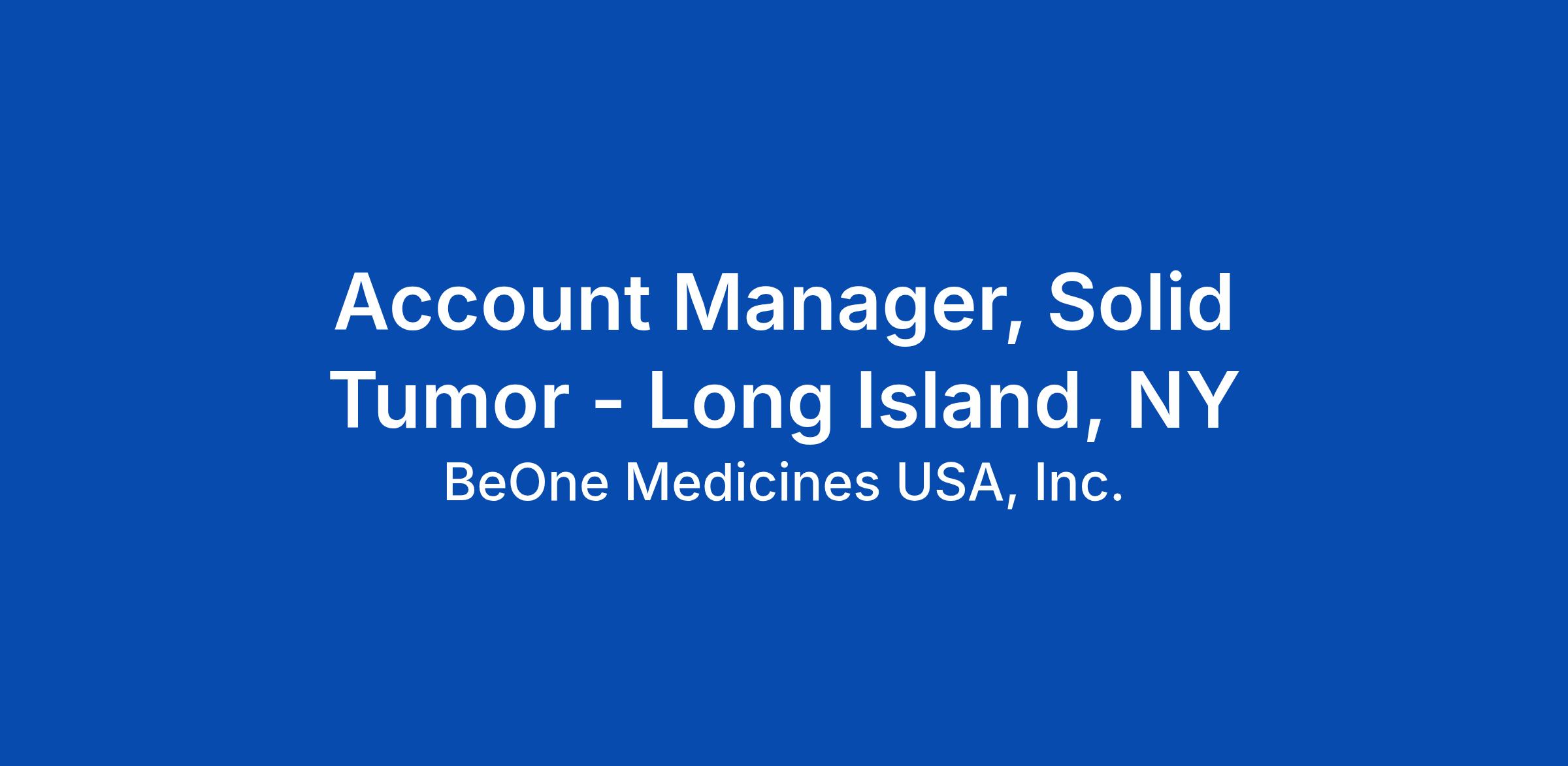 Account Manager, Solid Tumor - Long Island, NY