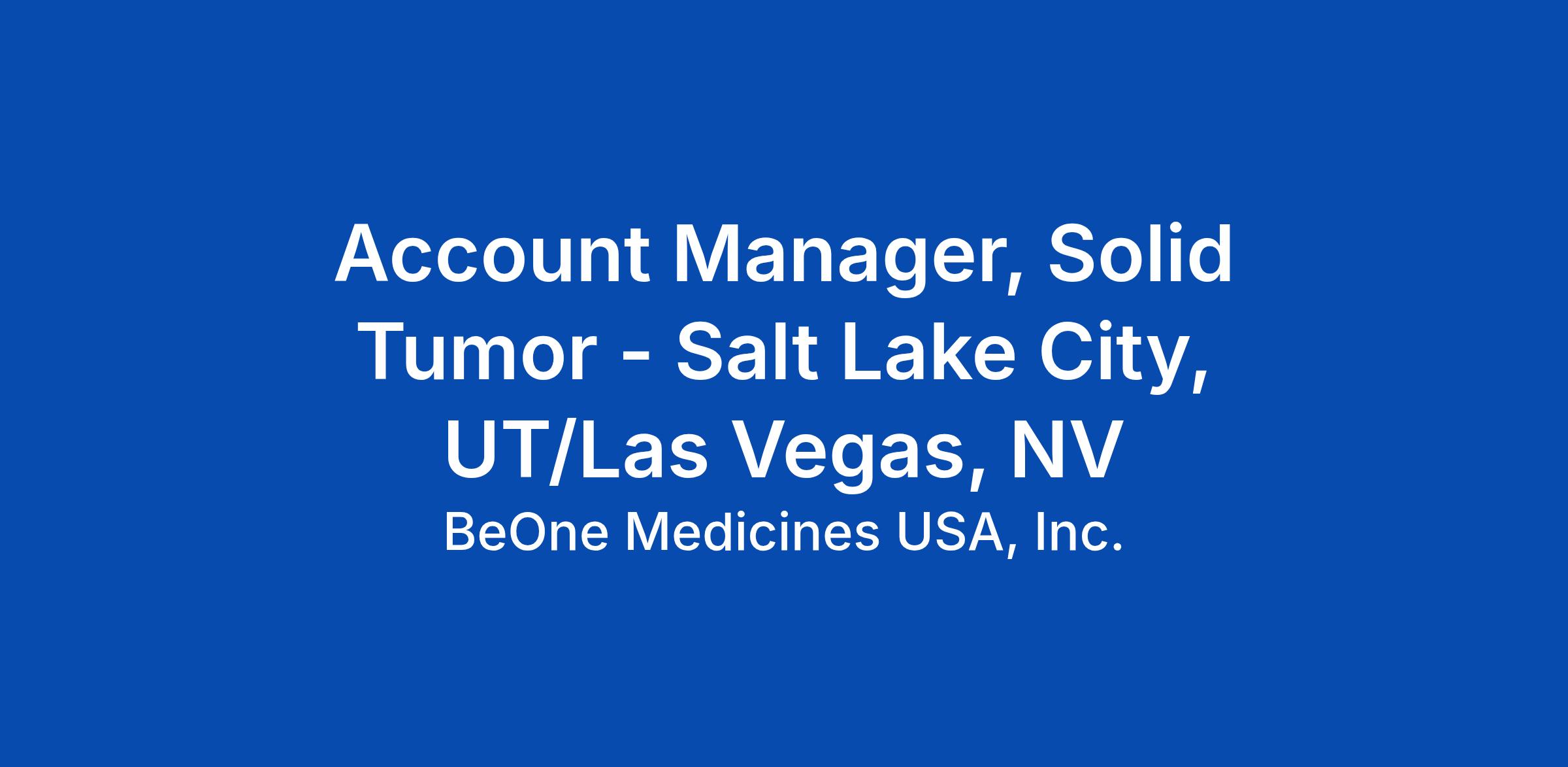 Account Manager, Solid Tumor - Salt Lake City, UT/Las Vegas, NV