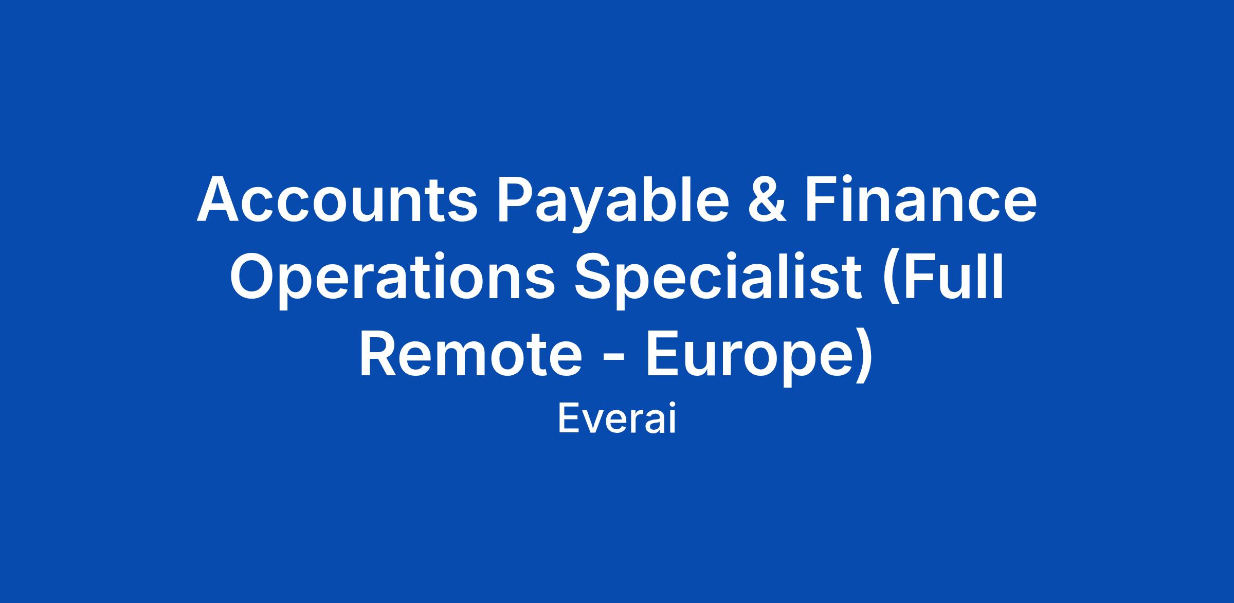 Accounts Payable & Finance Operations Specialist (Full Remote - Europe)