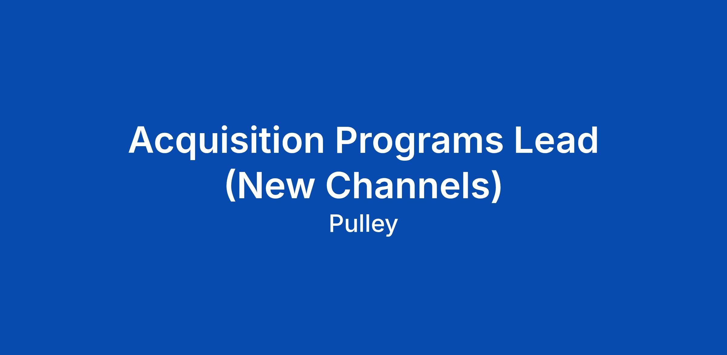 Acquisition Programs Lead (New Channels)