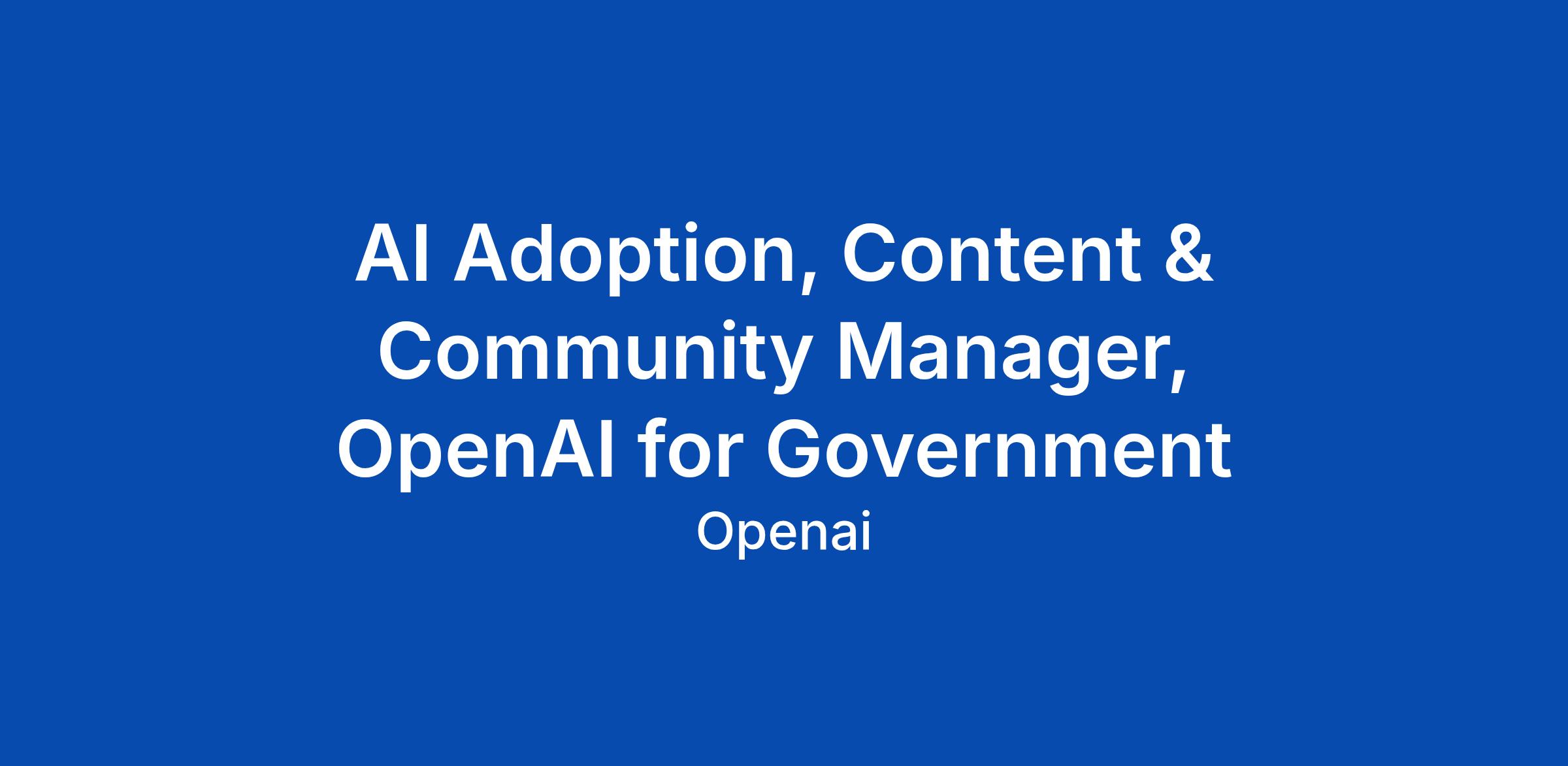 AI Adoption, Content & Community Manager, OpenAI for Government