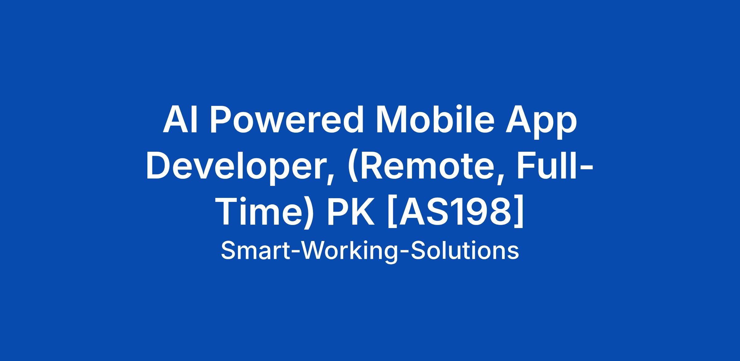 AI Powered Mobile App Developer, (Remote, Full-Time) PK [AS198]