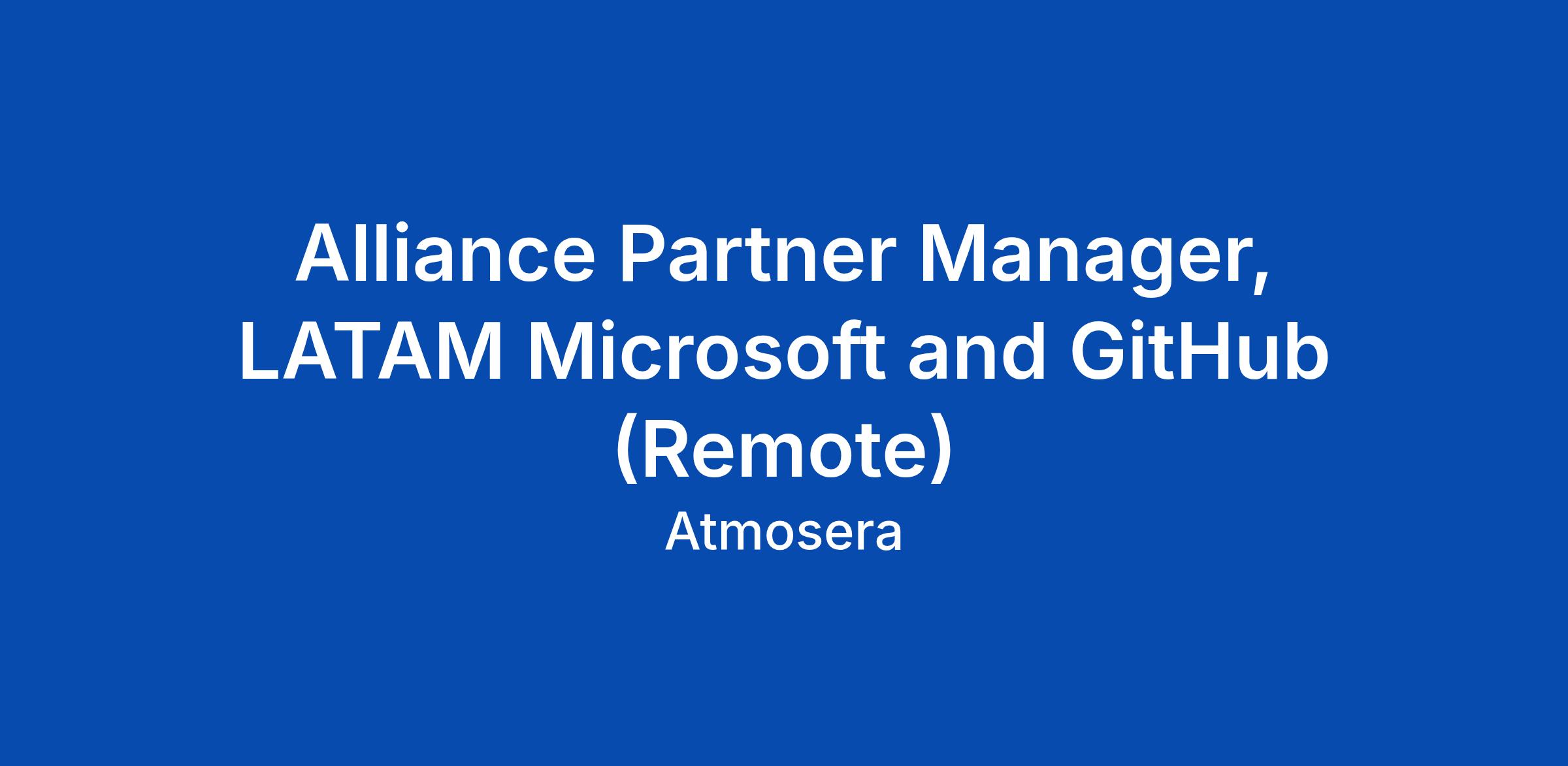 Alliance Partner Manager, LATAM Microsoft and GitHub (Remote)