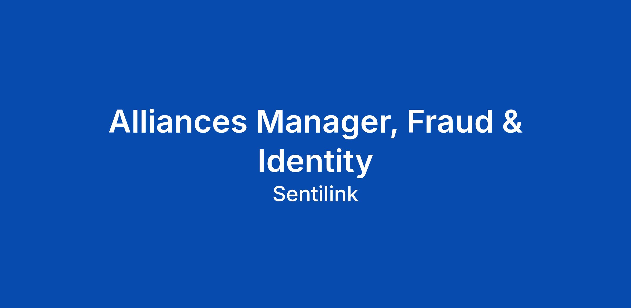 Alliances Manager, Fraud & Identity