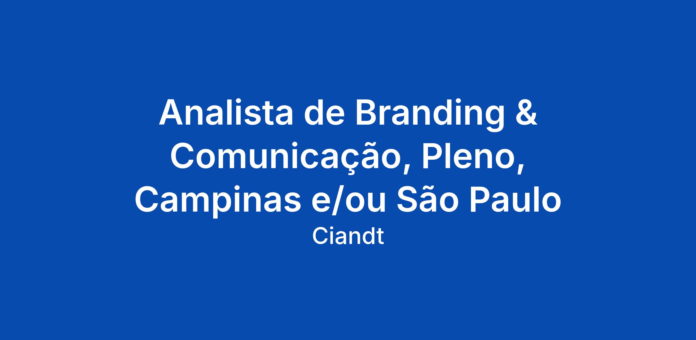 Analista de Branding & Comunicação, Pleno, Campinas e/ou São Paulo