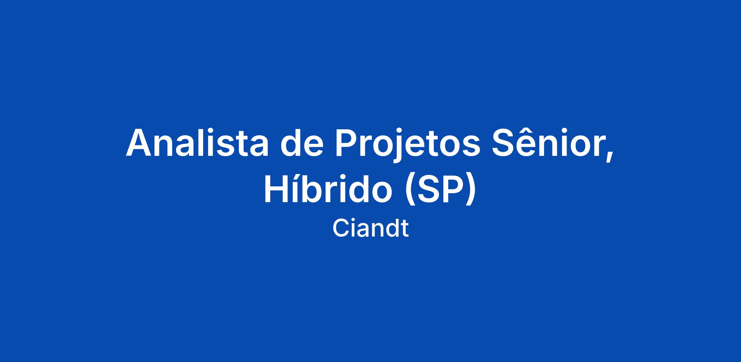 Analista de Projetos Sênior, Híbrido (SP)