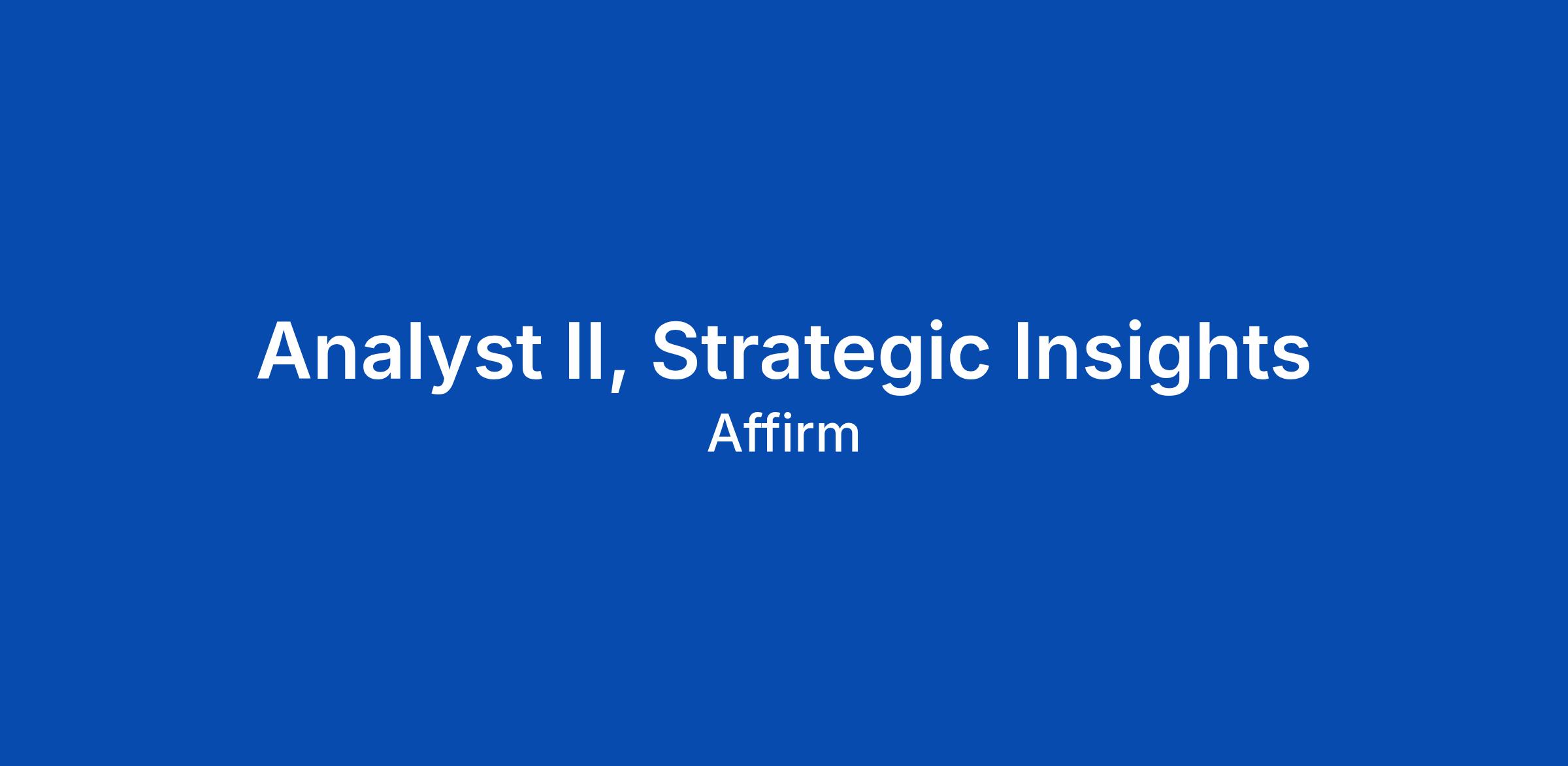 Analyst II, Strategic Insights