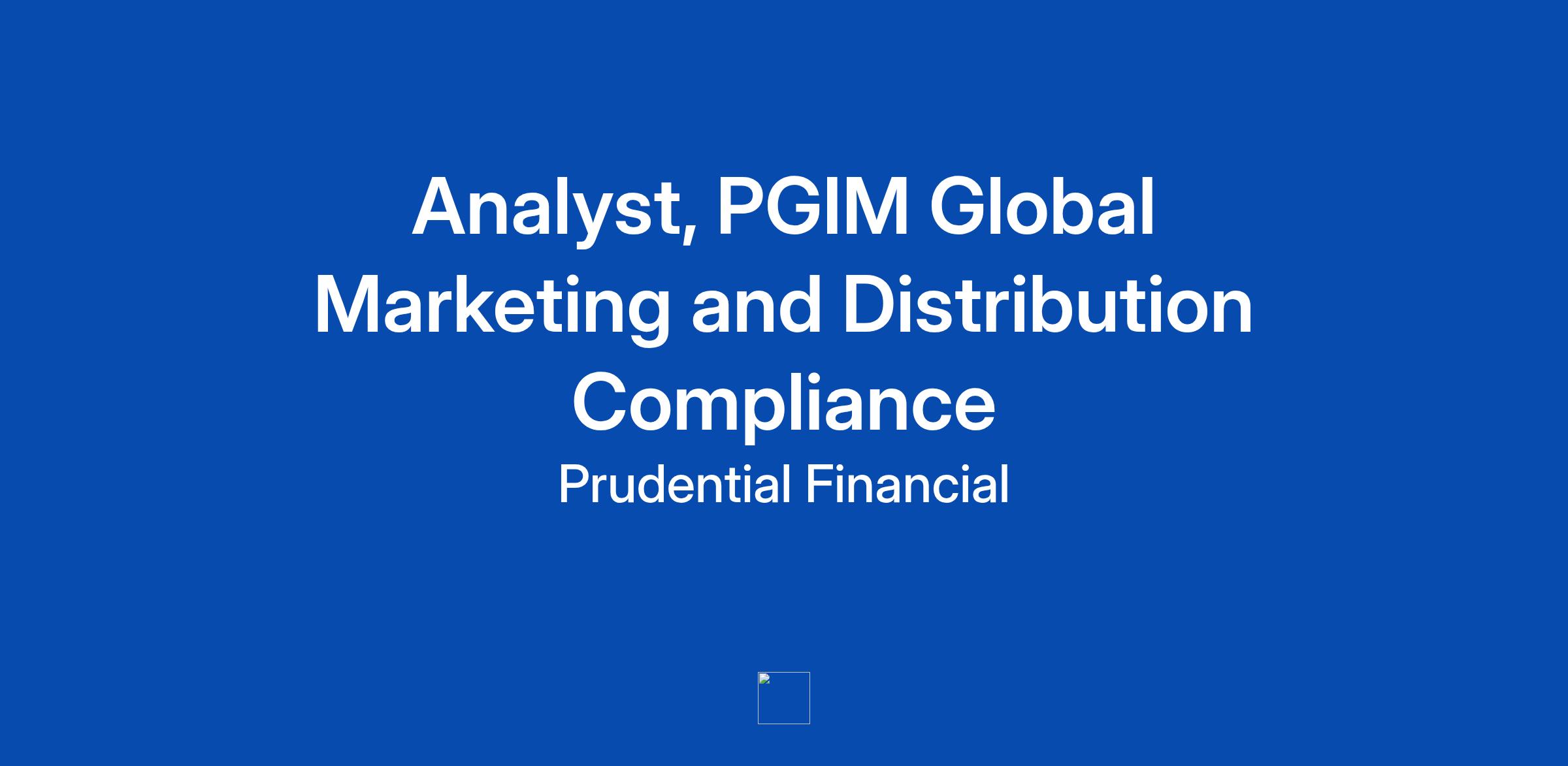 PGIM Global Marketing and Distribution Compliance is seeking an Analyst role to be in Newark, N.J. The analyst will work within the Compliance organization to support the global regulatory, contractual, and compliance requirements associated with the activities of the registered investment adviser. PGIM is the principal asset management business of Prudential Financial.