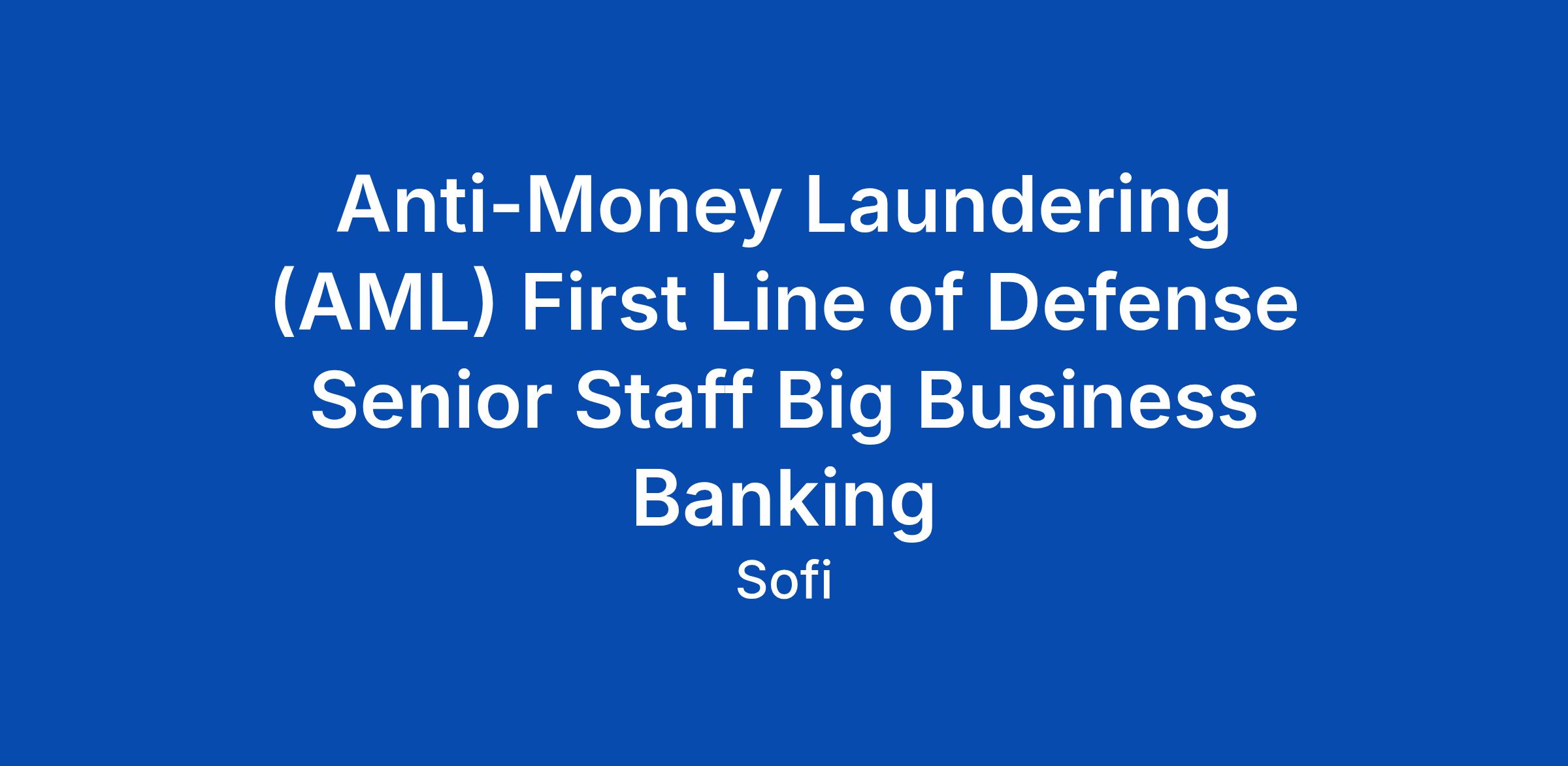 Anti-Money Laundering (AML) First Line of Defense Senior Staff Big Business Banking