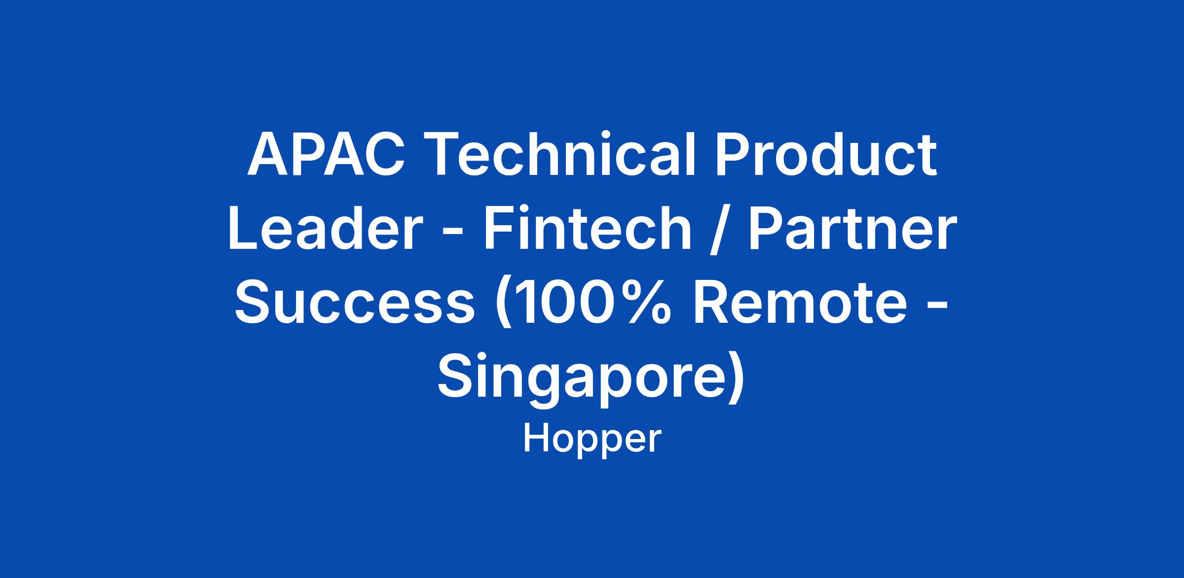 APAC Technical Product Leader - Fintech / Partner Success (100% Remote - Singapore)