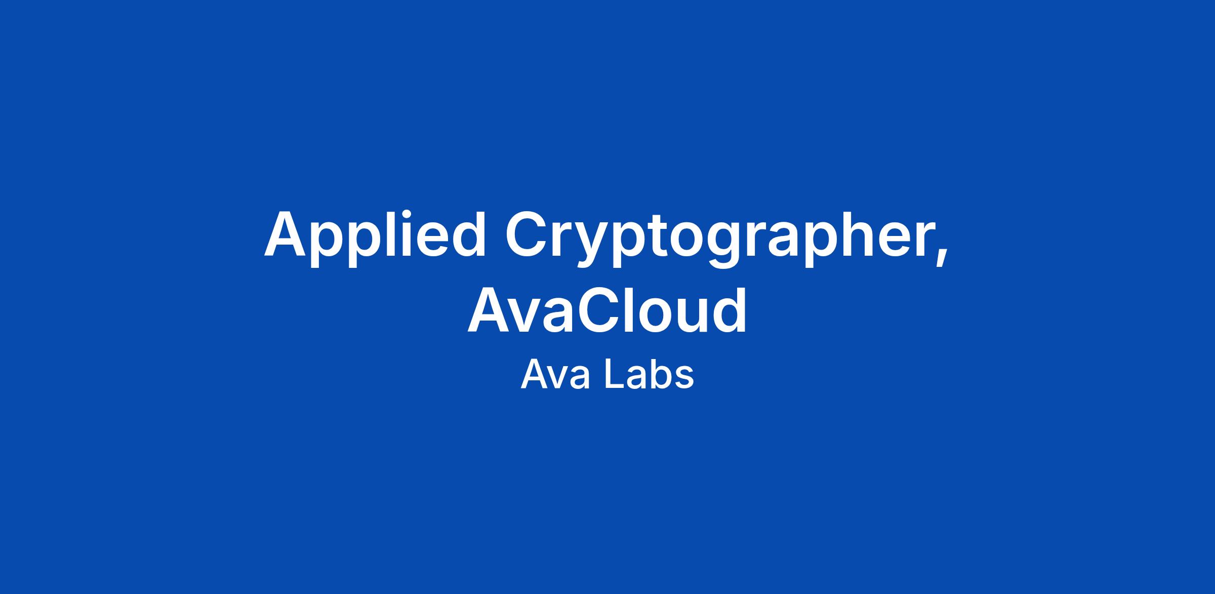 Looking to join a world-class blockchain development team? Ava Labs makes it simple to deploy high-performance solutions for Web3, led by innovations on Avalanche. The company was founded by Cornell computer scientists, who partnered with Wall Street veterans and early Web3 leaders to execute a promising vision for redefining the way people build permissionless networks. Ava Labs is redefining the way people create value with Web3. Join us as we empower people to easily and freely digitize all the world’s assets on one open, programmable blockchain platform. We are looking for an Applied Cryptography Engineer to join the AvaCloud team at Ava Labs. AvaCloud is redefining how businesses launch, manage, and scale Web3 applications on Avalanche L1s. Our mission is to make blockchain simple, powerful, and accessible. The team has already helped leading organizations like J.P. Morgan Kinexys, FIFA, and Nexon’s MapleStory bring innovative products to market—and we’re just getting started. Help design and extend the cryptographic backbone of our privacy-preserving protocols and infrastructure. You’ll work end-to-end—from research and design through high-performance implementation and produ