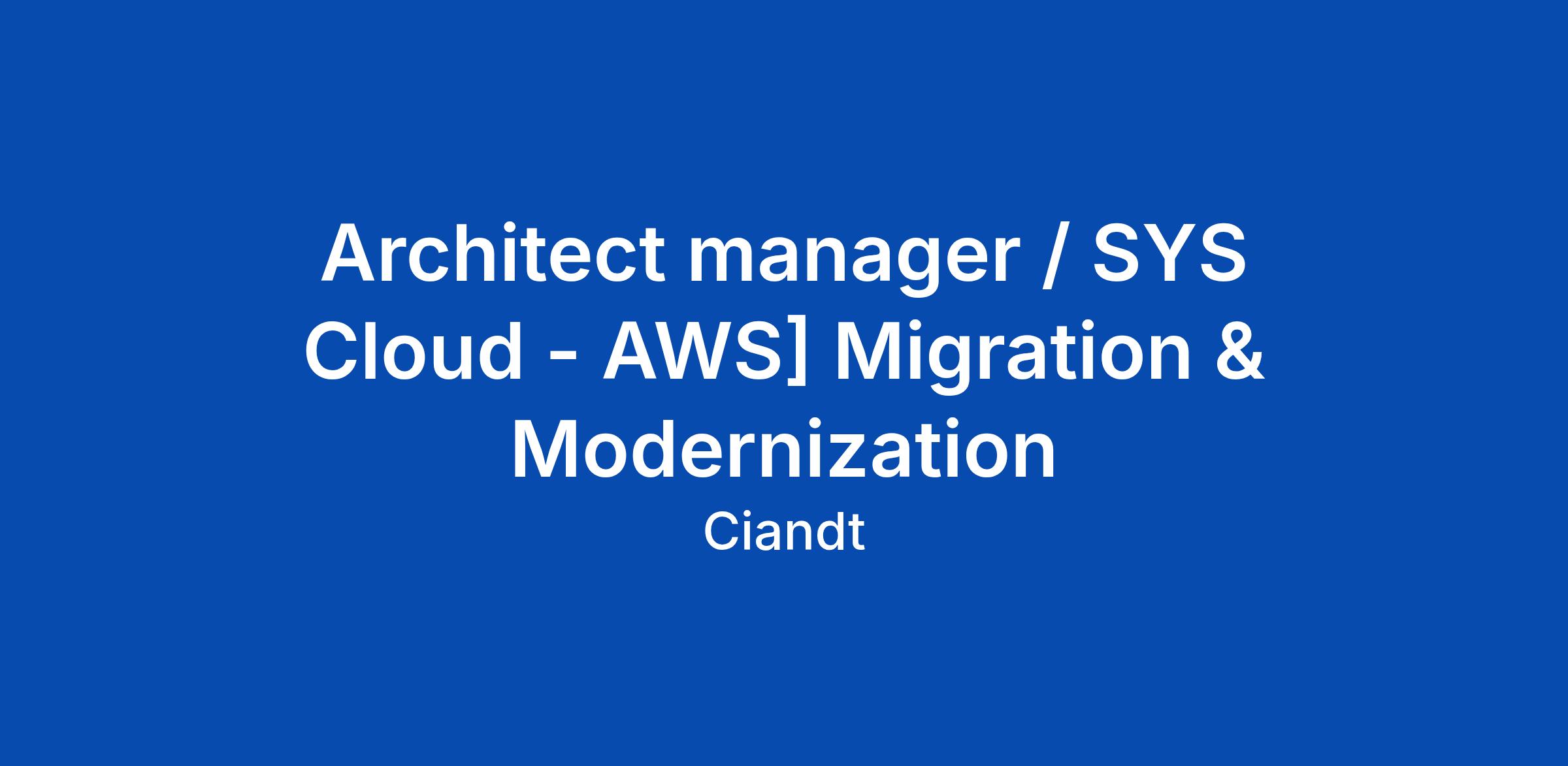 Architect manager / SYS Cloud - AWS] Migration & Modernization