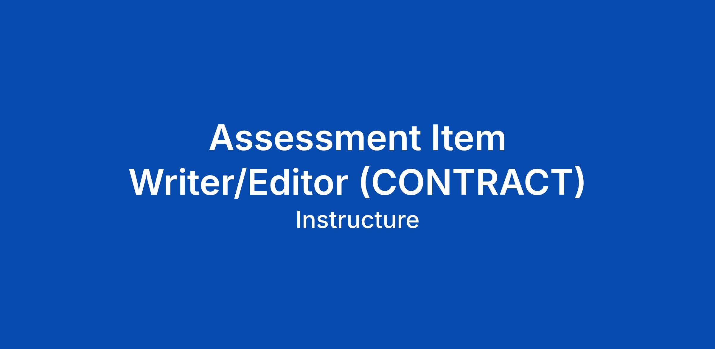 At Instructure, we believe in the power of people to grow and succeed throughout their lives. Our goal is to amplify that power by creating intuitive products that simplify learning and personal development, facilitate meaningful relationships, and inspire people to go further in their education and careers. We do this by giving smart, creative, passionate people opportunities to create awesome. And that's where you come in: At Instructure, we believe in the power of people to grow and succeed throughout their lives. Our goal is to amplify that power by creating intuitive products that simplify learning and personal development, facilitate meaningful relationships, and inspire people to go further in their education and careers. We do this by giving smart, creative, passionate people opportunities to create awesome solutions. And That's Where You Come In: Instructureβs Assessment Content Team is seeking freelance Assessment Writers and Editors to support the development of assessment products, including the Mastery View Predictive Assessments, Mastery View College Prep Assessments, and Mastery Item Banks. Item writers and editors will assist with the development of assessment produ