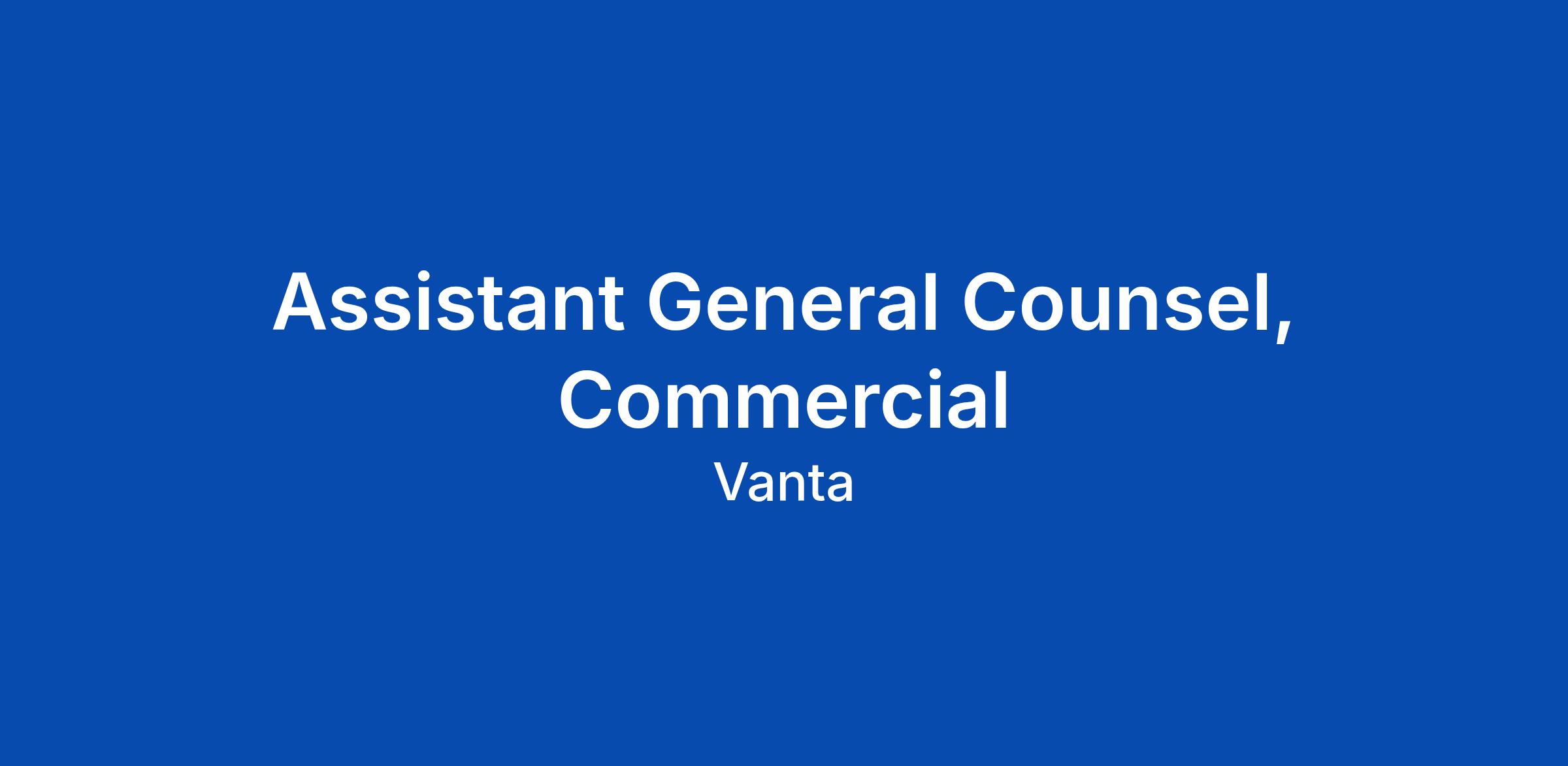 The Assistant General Counsel will be responsible for overseeing and negotiating key deals and relationships, developing new processes and improving existing ones, and acting as a trusted business partner. Reporting to the General Counsel, your responsibilities will include ownership of all aspects of Vanta’s negotiations with customers and vendors and associated processes, instituting policies and processes while maintaining hypergrowth, and input on legal operations. The ideal candidate will have significant experience executing and negotiating commercial transactions while supporting a company through hypergrowth.