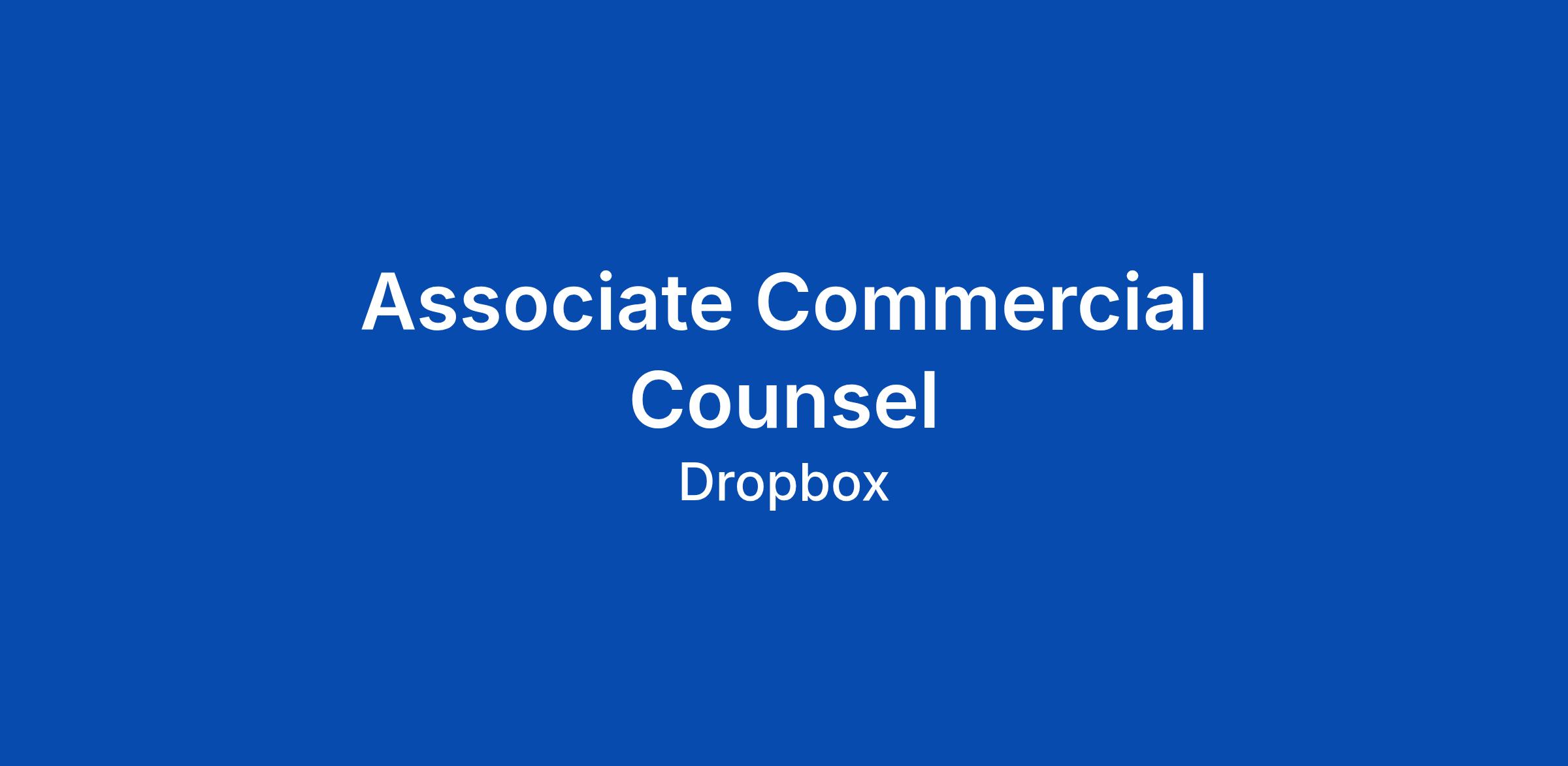 Weβre looking for an Associate Commercial Counsel to be a key member of Dropboxβs global commercial legal team focusing on general commercial deal work, including both sales and procurement related deals, processes, and procedures. Reporting to the Senior Commercial Counsel - North America Lead, this