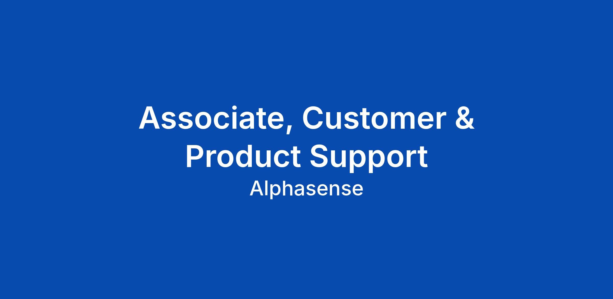 Associate, Customer & Product Support
