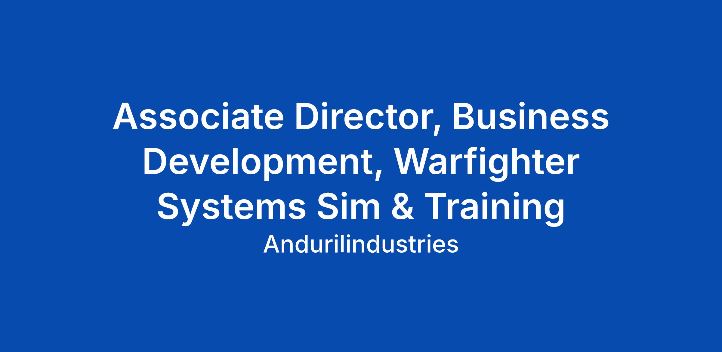 Associate Director, Business Development, Warfighter Systems Sim & Training