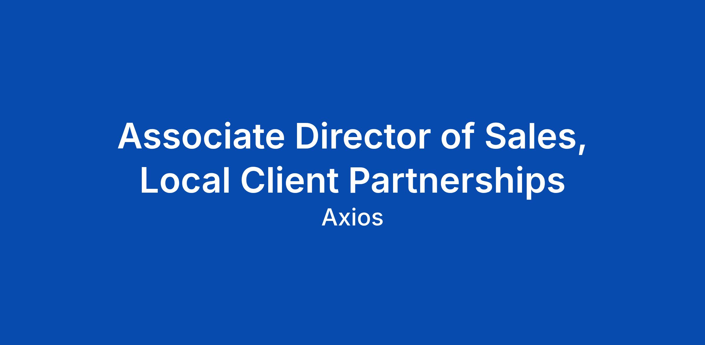 The big picture: Axios is a media company dedicated to providing trustworthy, award-winning news content in an audience-first format. We are hiring an Associate Director for local client partnerships to accelerate revenue growth across our local markets through new partner acquisition and intentional account expansion.
