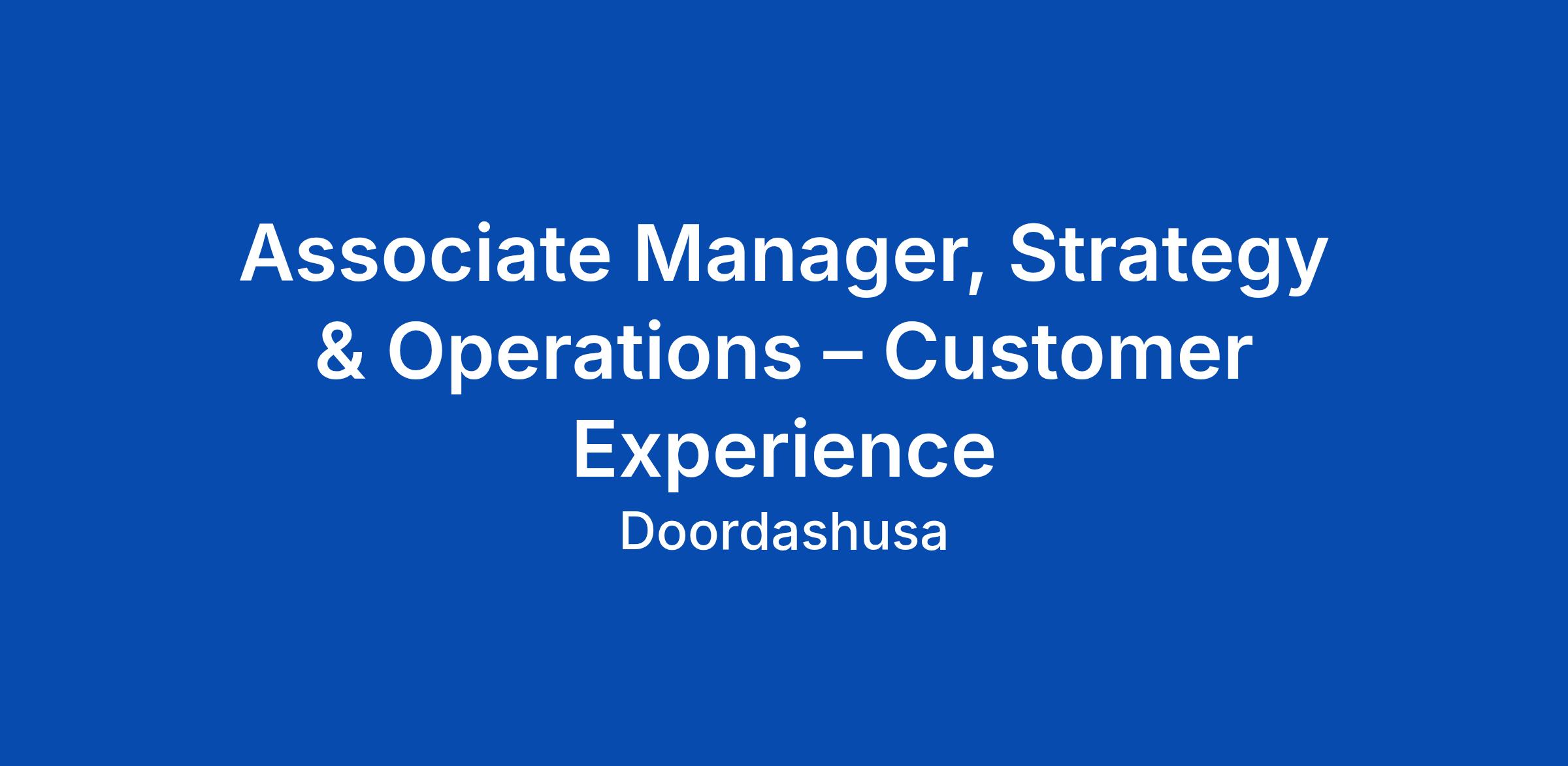Associate Manager, Strategy & Operations β Customer Experience
