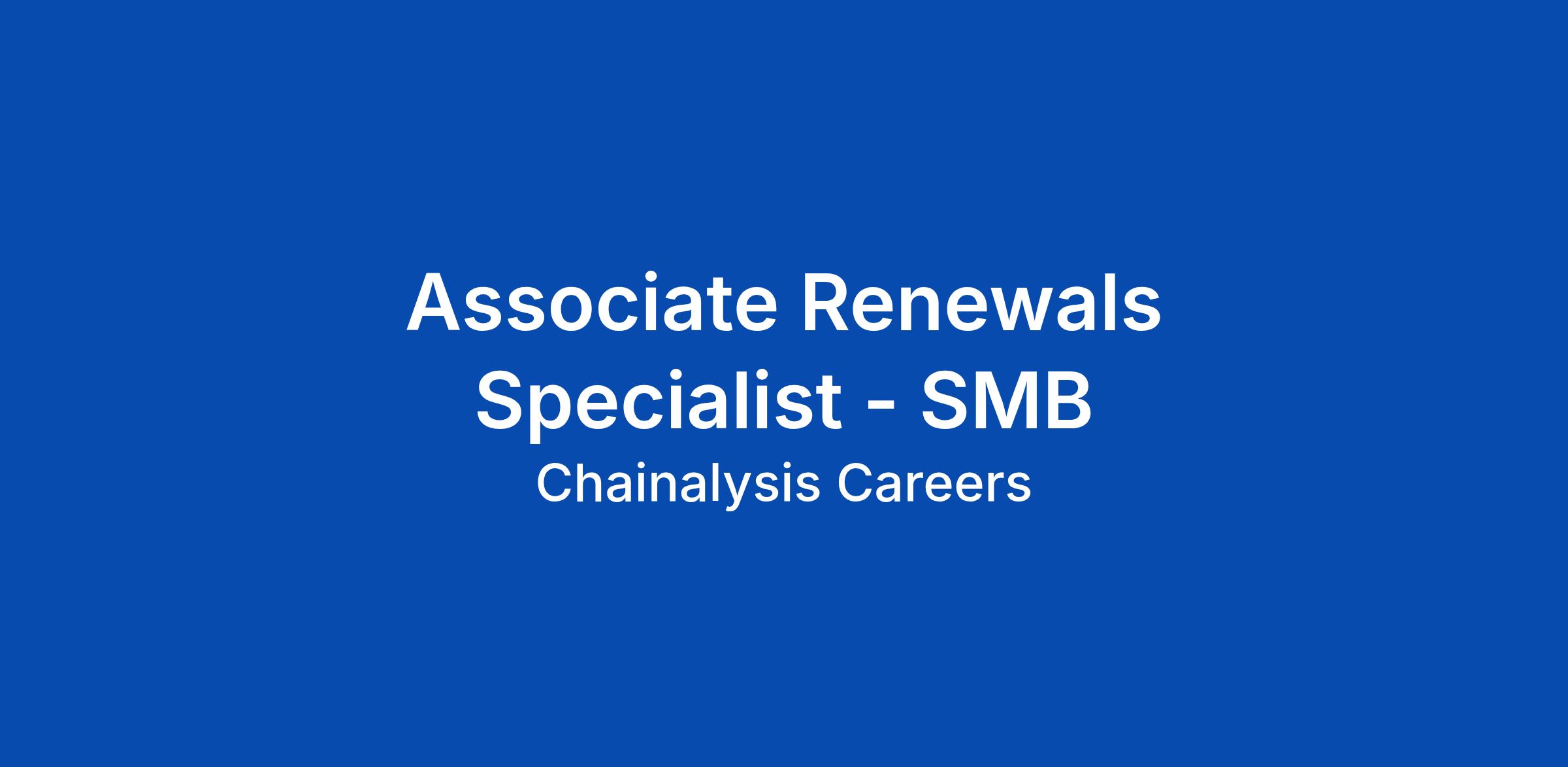 Associate Renewals Specialist - SMB/Success Outreach are driven operational problem-solvers working to set up success and expansion within our self-service segment. Our teamβs goal is to make sure small and medium-sized cryptocurrency businesses and financial institutions see the value of implementing our solutions, have a great digital experience, and keep coming back. Associate Renewals Specialist have an understanding and some experience of a software sales cycle and are eager to learn the ropes in building a new type of customer journey to support our emerging segment of customers. Youβll grow your understanding of renewals and account management and learn to identify pain points, communicate the value of our solutions, and lead customers through a successful renewal process. In this role, your success will be measured by renewal attainment, operational excellence, and successful expansion of these high-potential accounts. In this role, youβll: - Manage customer support escalations, prepare/execute renewals and work with the team to keep our machine running like clockwork. - Train to be an expert in our product suite and connect existing customers with the best solutions to ach