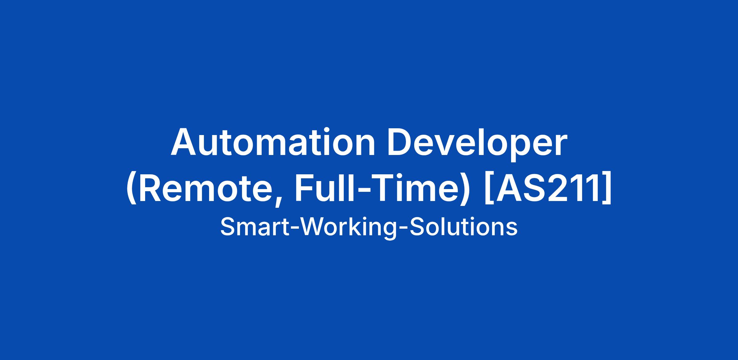 Automation Developer (Remote, Full-Time) [AS211]