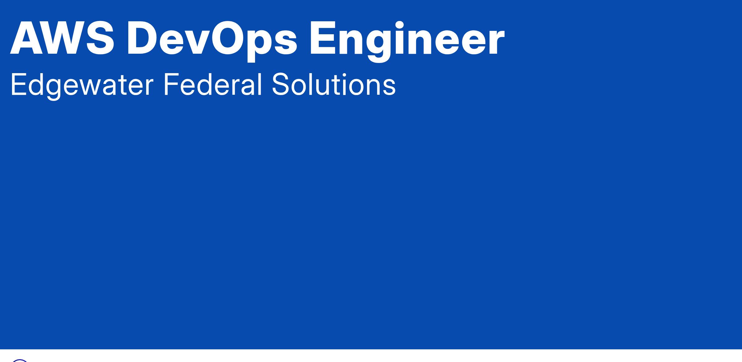 Edgewater Federal Solutions is an Equal Opportunity Employer. It has been and continues to be our policy to provide equal employment to all employees and applicants for employment without regard to race, color, religion, gender, sexual orientation, national origin, age, disability, marital status, veteran status and/or other status protected by applicable law.