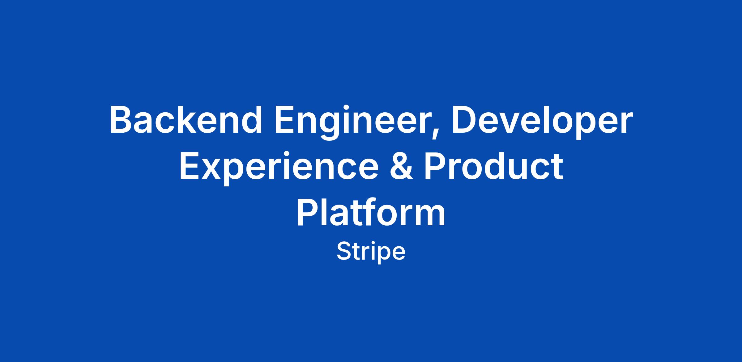 Backend Engineer, Developer Experience & Product Platform