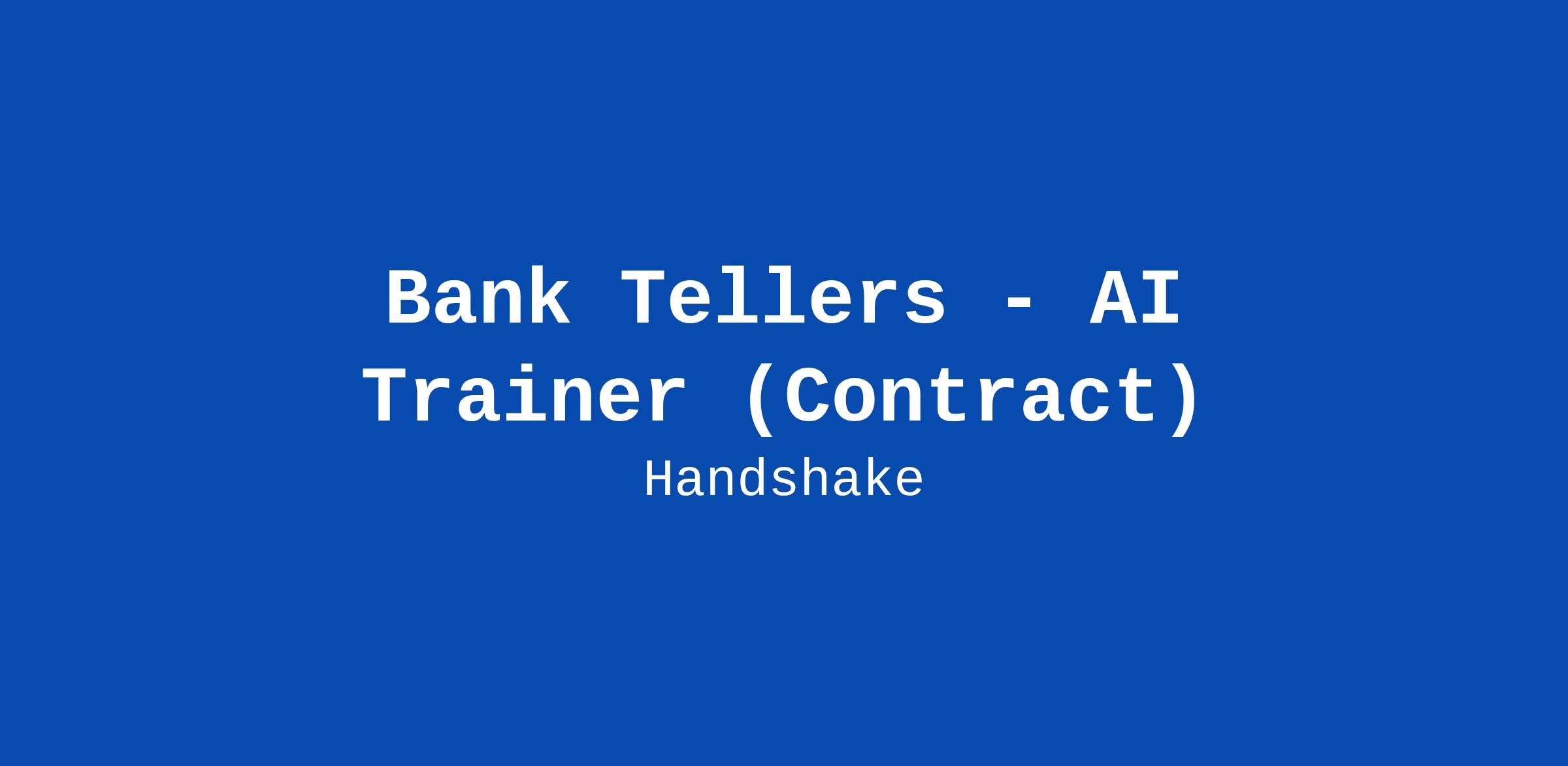Handshake is recruiting Bank Tellers Professionals to contribute to an hourly, temporary AI research project—but there’s no AI experience needed. In this program, you’ll leverage your professional experience to evaluate what AI models produce in your field, assess content related to your field of work, and deliver clear, structured feedback that strengthens the model’s understanding of your workplace tasks and language. The Handshake AI opportunity runs year-round, with project opportunities opening periodically across different areas of expertise.
