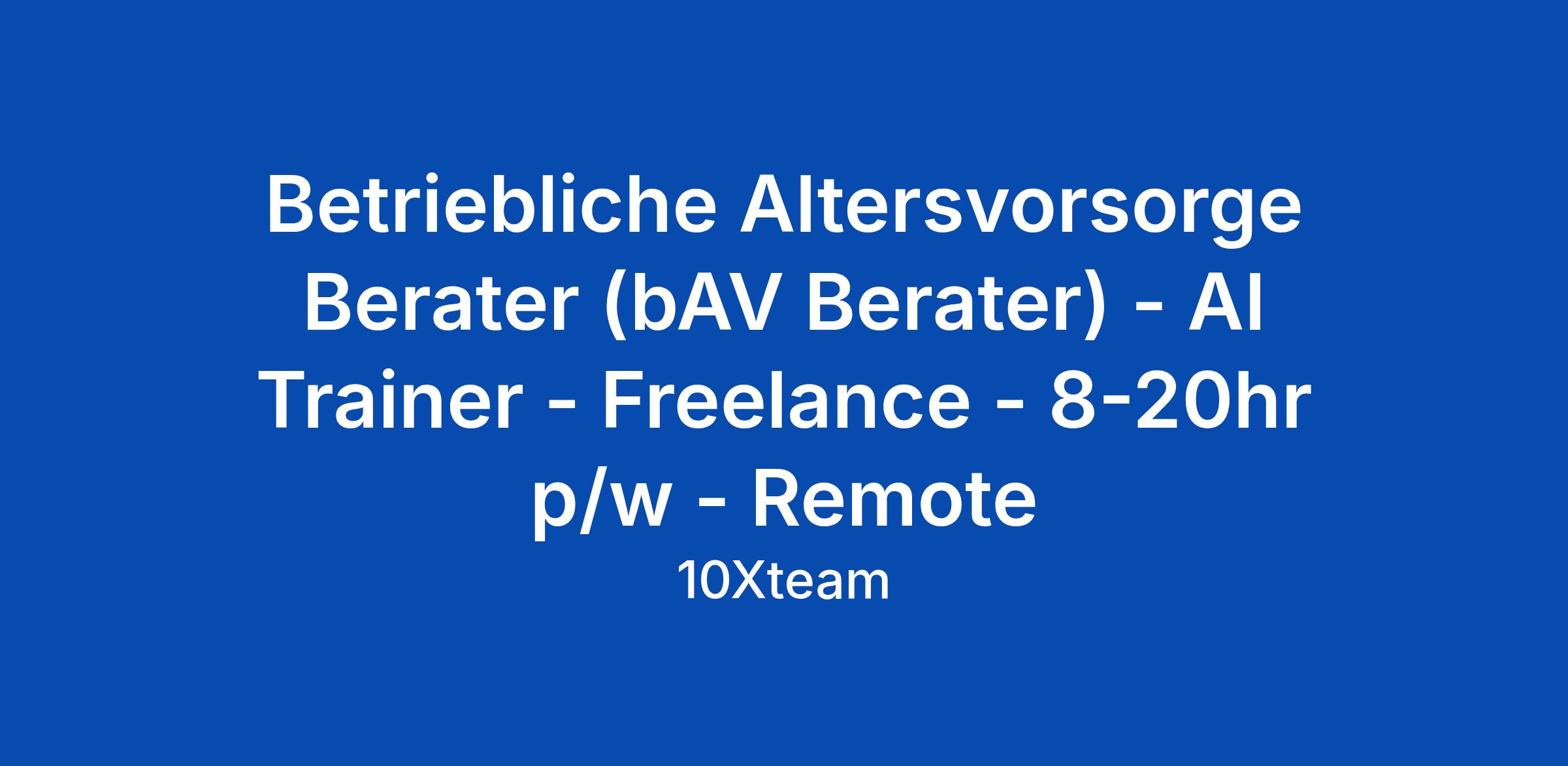 Betriebliche Altersvorsorge Berater (bAV Berater) - AI Trainer - Freelance - 8-20hr p/w - Remote