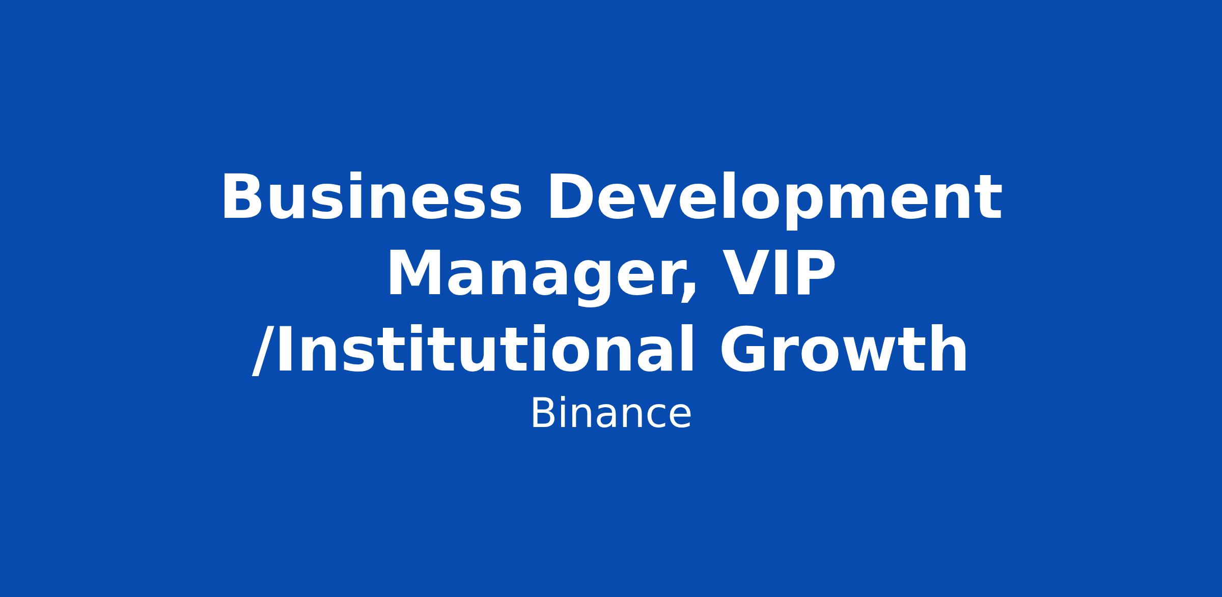 Business Development Manager, VIP /Institutional Growth