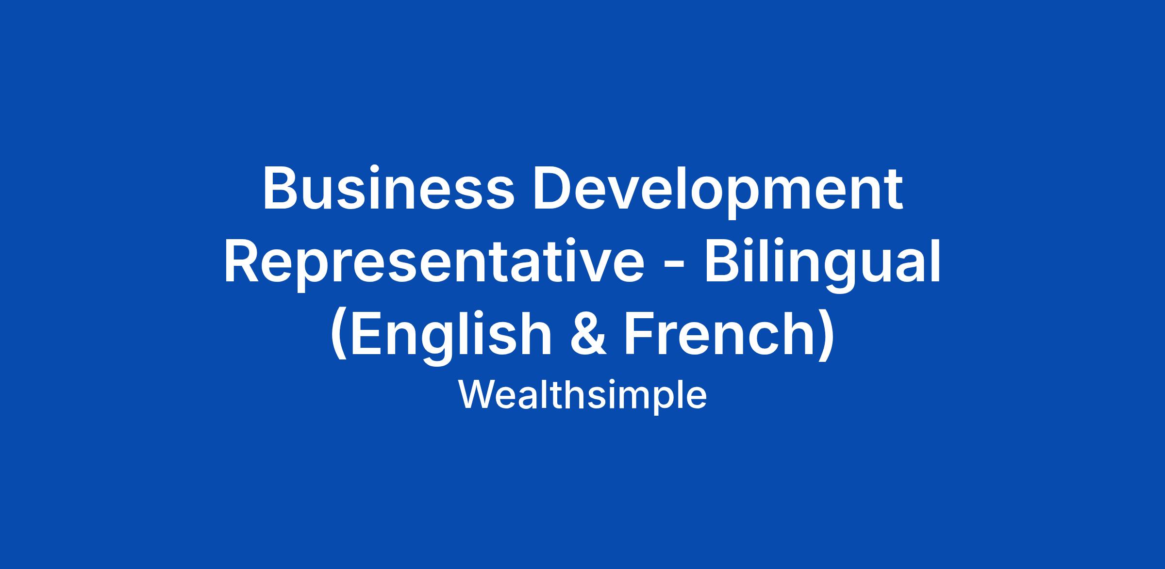 Business Development Representative - Bilingual (English & French)