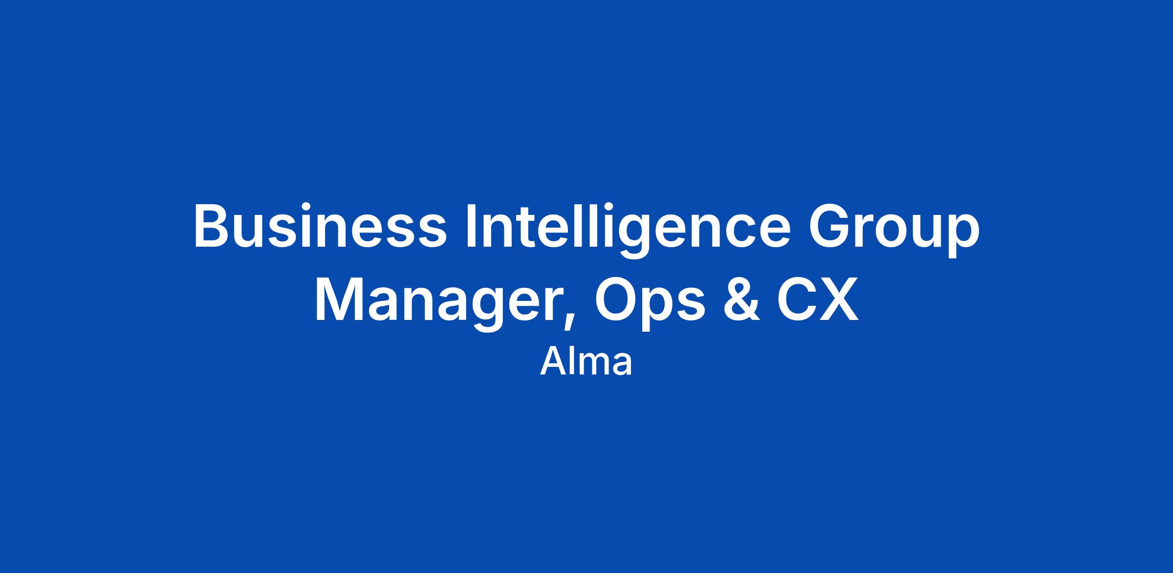 Business Intelligence Group Manager, Ops & CX