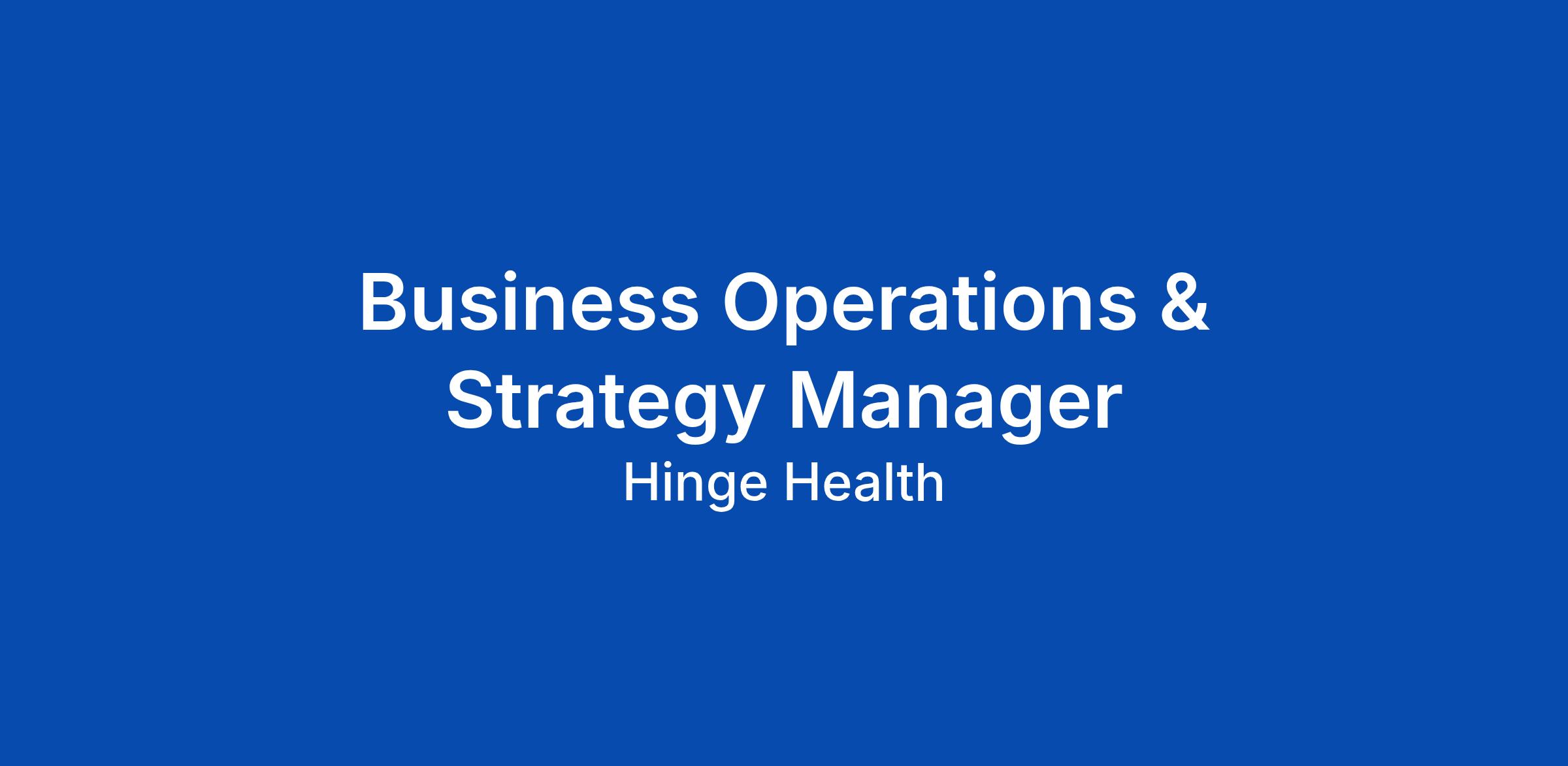 THE OPPORTUNITY Join the team that acts as the strategic engine for Hinge Health. In this role, you won't just analyze data; you will shape the future of musculoskeletal care by driving the companyโs most critical cross-functional initiatives. You will bridge the gap between high-level strategy and operational executionโtransforming abstract ideas into scalable solutions that directly impact our 20+ million members. If you are a strategic operator who thrives on solving complex problems and navigating ambiguity to build the future of healthcare, this is the role for you. Example project areas include: - New revenue / product strategies (e.g., business case modeling, market / competitor landscaping) - Piloting and taking new products to market (e.g., 0 to 1 product developing, scaling new product to full roll-out) - Business outcome management - Scaling and transforming operations WHAT YOU'LL ACCOMPLISH - In your first 3 months: You will dive deep into our business performance metrics and current strategic initiatives. You will build trust with key stakeholders across Product, Commercial, and Clinical teams, and take ownership of a key workstream within an ongoing strategic project