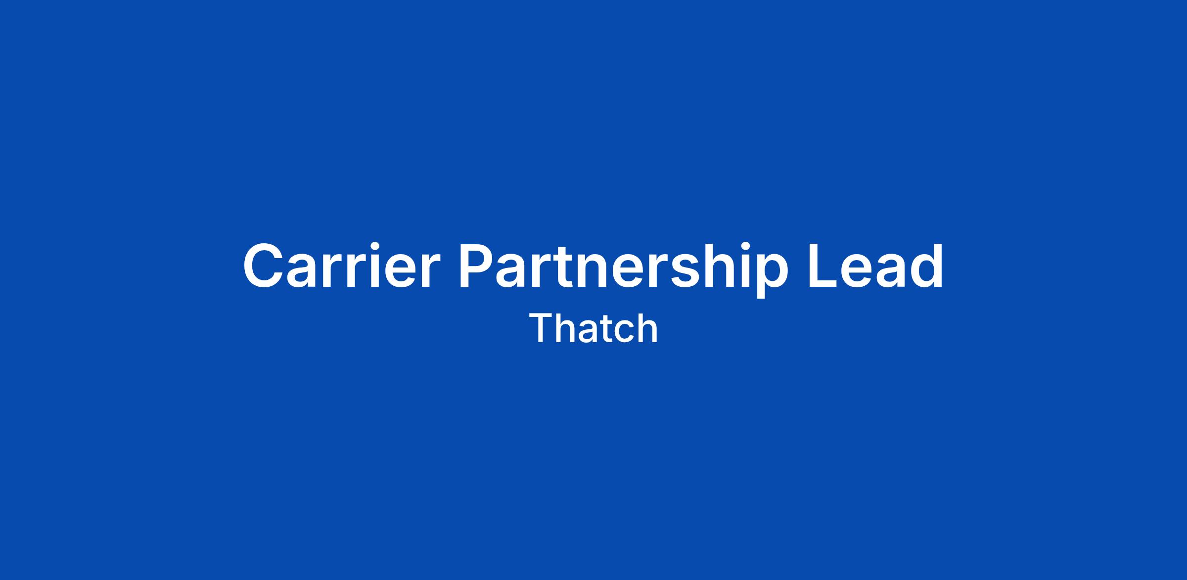 We're on the lookout for a Carrier Partnerships Lead to join Thatch. This role is vital for our company, as you'll be responsible for managing the commercial relationships with our health insurance carrier partners. You will spearhead the development and maintenance of these crucial partnerships, ensuring alignment between Thatch's internal stakeholders and the operational needs of our carriers. Our goal is to make healthcare simple and effective for every member who joins our platformβa daunting task within the US Healthcare system that we are looking for someone willing to tackle head-on .By partnering with carriers closely we can help push the industry forward.