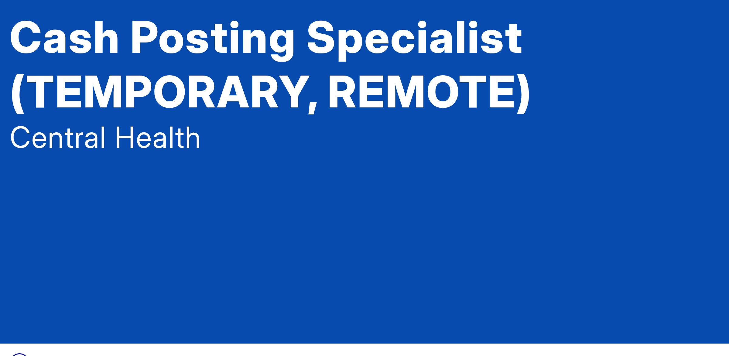 The Cash Posting Specialist works as part of a central Revenue Cycle team to process insurance payments and is responsible for reconciling deposits, posting payments and recoupments, and managing patient accounts. The Cash Posting Specialist ensures accurate posting of ANSI codes from remits to ensure proper work queue routing and required billing data elements to ensure an accurate accounting processed for payment and revenue reporting.