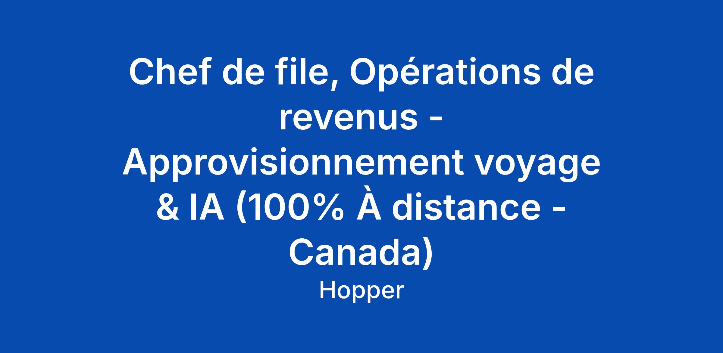 Chef de file, Opérations de revenus - Approvisionnement voyage & IA (100% À distance - Canada)