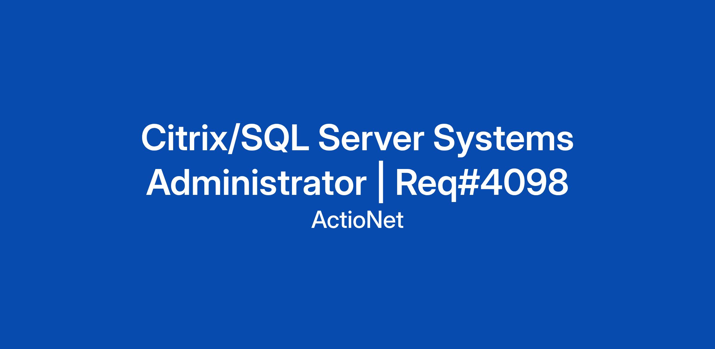 ActioNet has an opportunity for a Citrix/SQL Server Systems Administrator requiring a SECRET clearance in Vienna, VA.