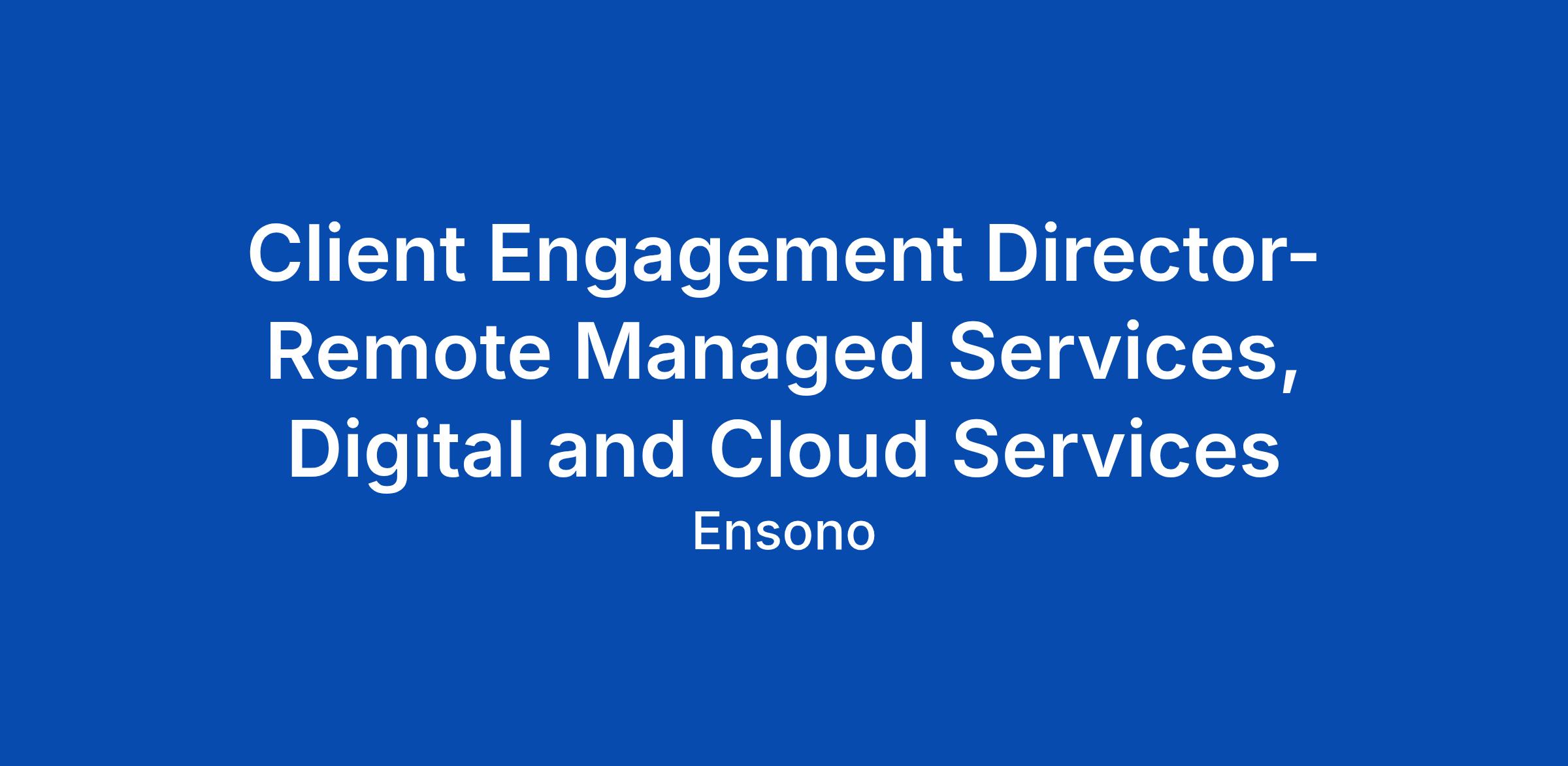 Client Engagement Director- Remote Managed Services, Digital and Cloud Services