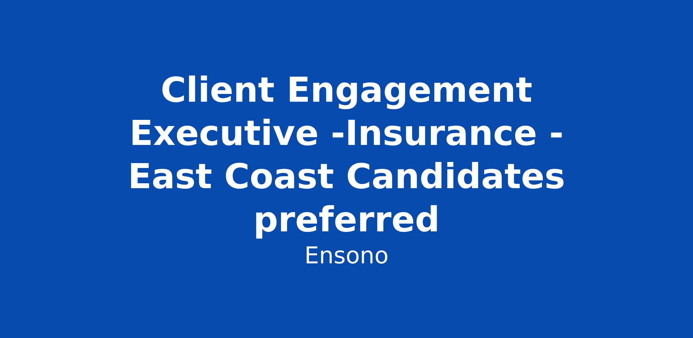 Client Engagement Executive -Insurance - East Coast Candidates preferred