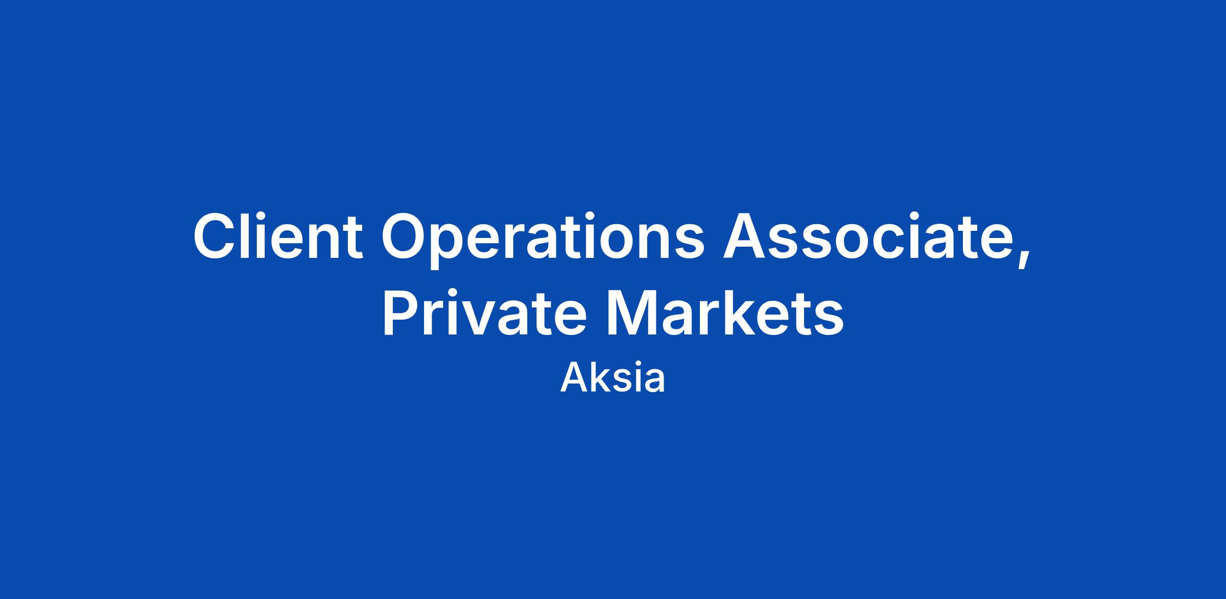 Client Operations Associate, Private Markets
