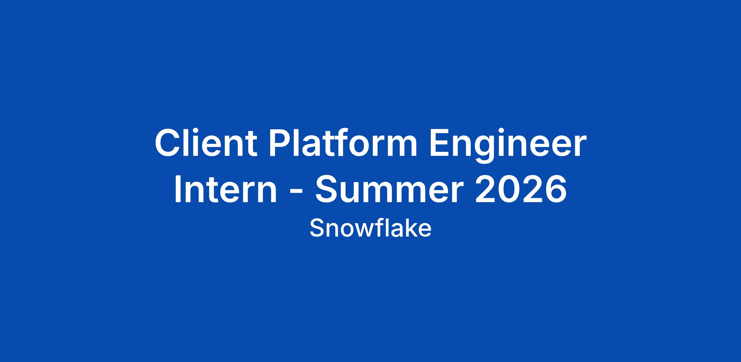 Client Platform Engineer Intern - Summer 2026