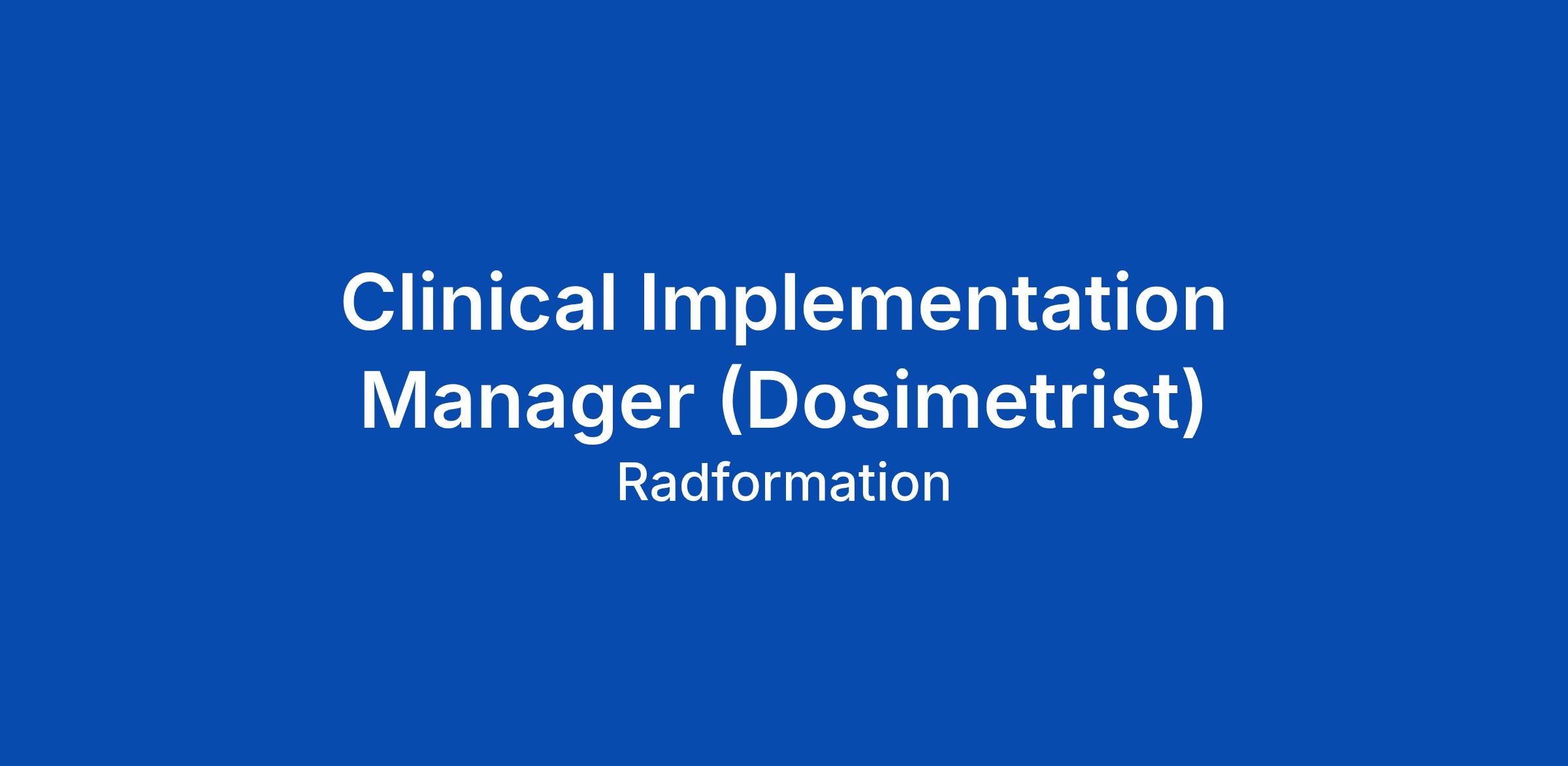 About Radformation Radformation is transforming the way cancer clinics deliver care. Our innovative software automates and standardizes radiation oncology workflows, enabling clinicians to plan and deliver treatments faster, safer, and more consistently, so patients everywhere can receive the same high-quality care. Our software focuses on three key areas: Time savings through automation. Error reduction through automated systems. Increased quality care through advanced algorithms and workflows. We are a fully remote, mission-driven team united by a shared goal: to reduce cancerโs global impact and help save more of the 10 million lives it claims each year. Every line of code, every product release, and every conversation with our customers brings us closer to ensuring no patientโs treatment quality depends on where they live. Why This Role Matters In this role you will help clinics successfully adopt Radformationโs software and build efficient, safe, and scalable radiation oncology workflows. You will work closely with Sales, Product, IT, and Engineering teams to deliver successful implementations, support customers, and continuously improve our products based on real-world clinic