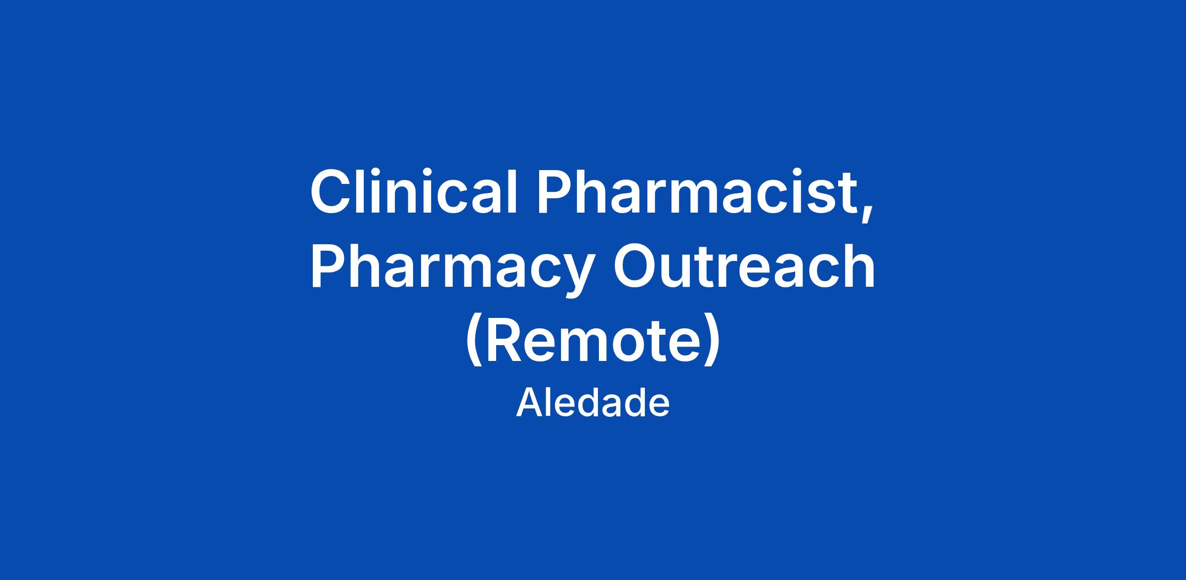 Clinical Pharmacist, Pharmacy Outreach (Remote)