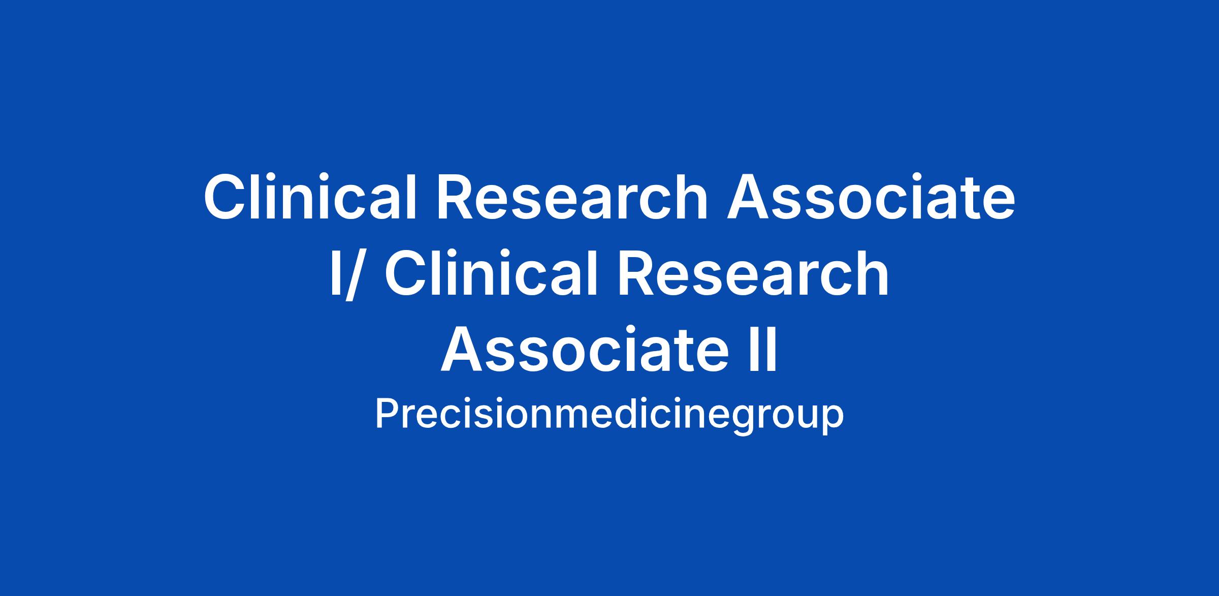 Clinical Research Associate I/ Clinical Research Associate II