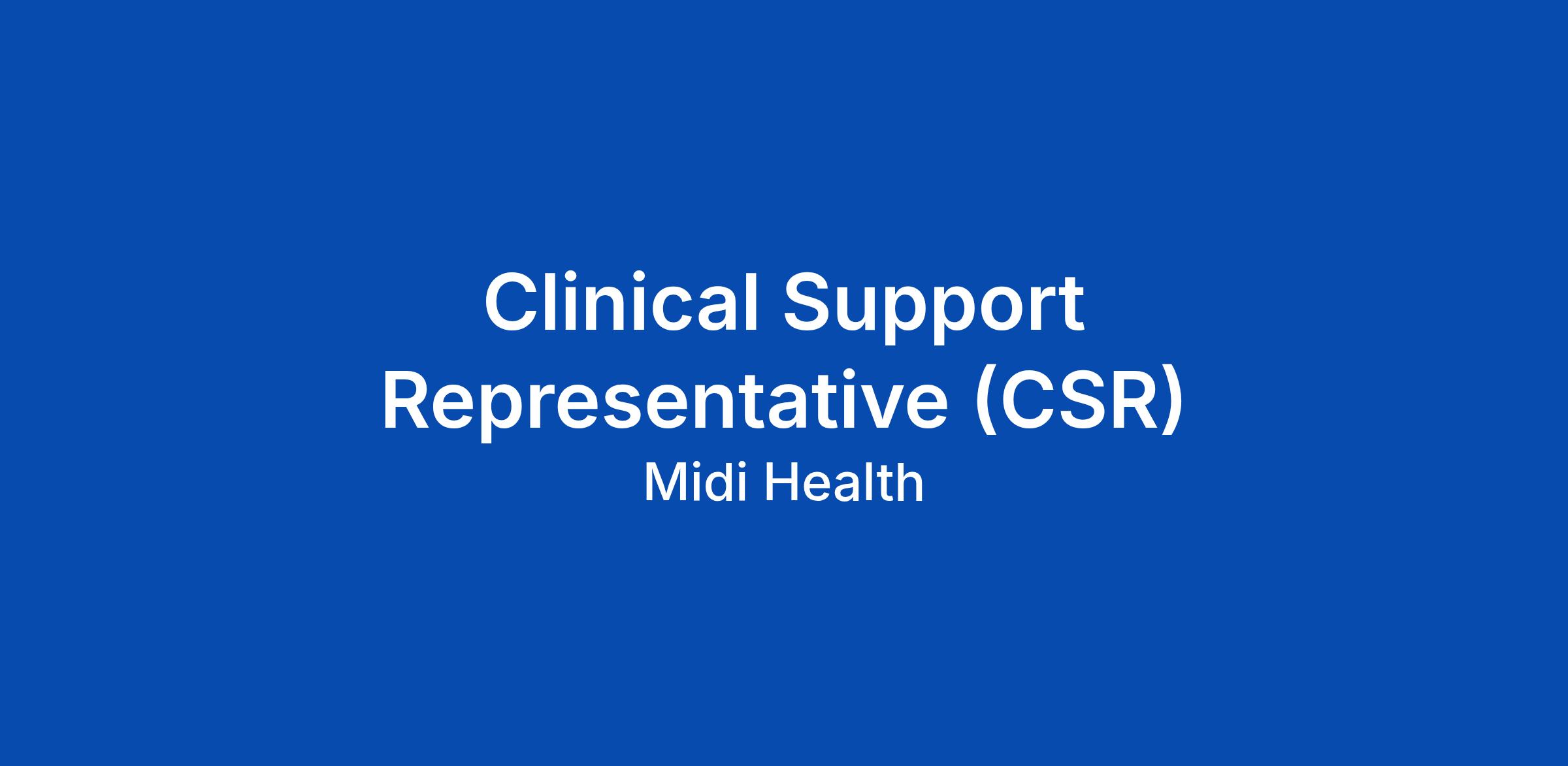 At Midi Health, we're not just building a company; we're reclaiming midlife for women as a new beginning. We're the leading force in midlife women's healthcare, providing expert-designed, clinician-delivered, and insurance-covered care that's changing lives. As a company founded by women, for women, we're dedicated to helping every woman embrace midlife as a powerful new chapter. Join us, and you'll be part of a team that embodies our core values every single day. Clinical Support Representative (CSR): π€π©Ί The Clinical Support Representative (CSR) works within our CX - Practice Administration team and serves as a patient-facing contact center role dedicated to supporting clinical operations and care coordination during business hours. This role responds to inbound patient calls and conducts outbound follow-ups related to prescriptions, prior authorizations, lab and imaging orders, referrals, and other clinical workflow questions. Clinical Support Representatives work directly within the Electronic Health Record (EHR) to review patient charts, understand the status of clinical orders and prescriptions, document patient interactions, and route requests to the appropriate clinical team