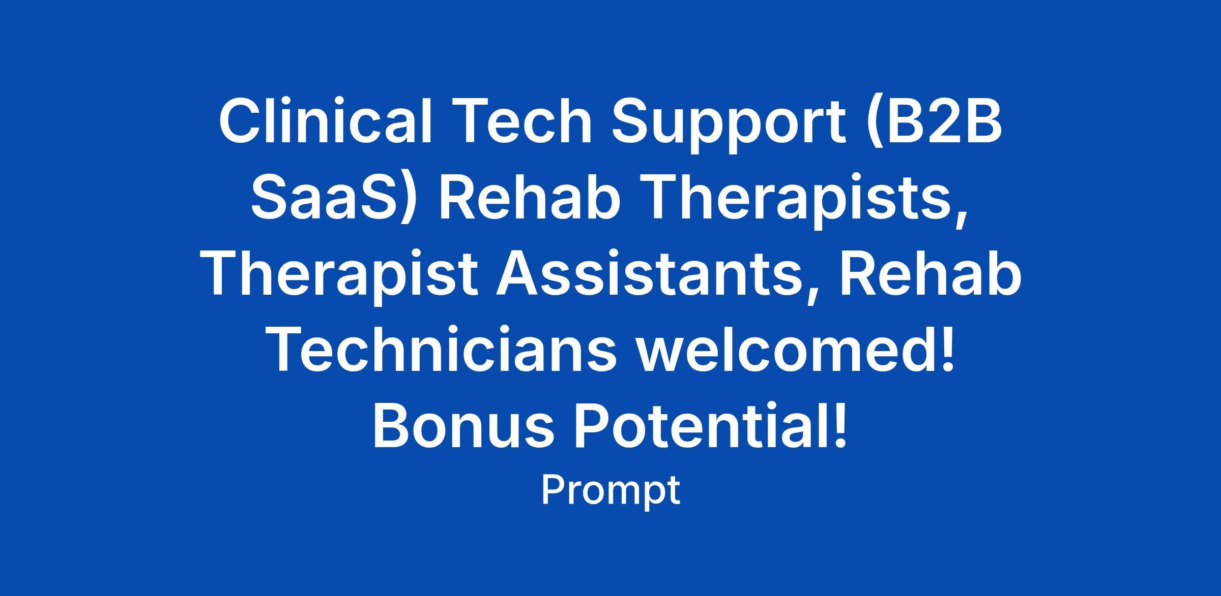 Clinical Tech Support (B2B SaaS) Rehab Therapists, Therapist Assistants, Rehab Technicians welcomed! Bonus Potential!
